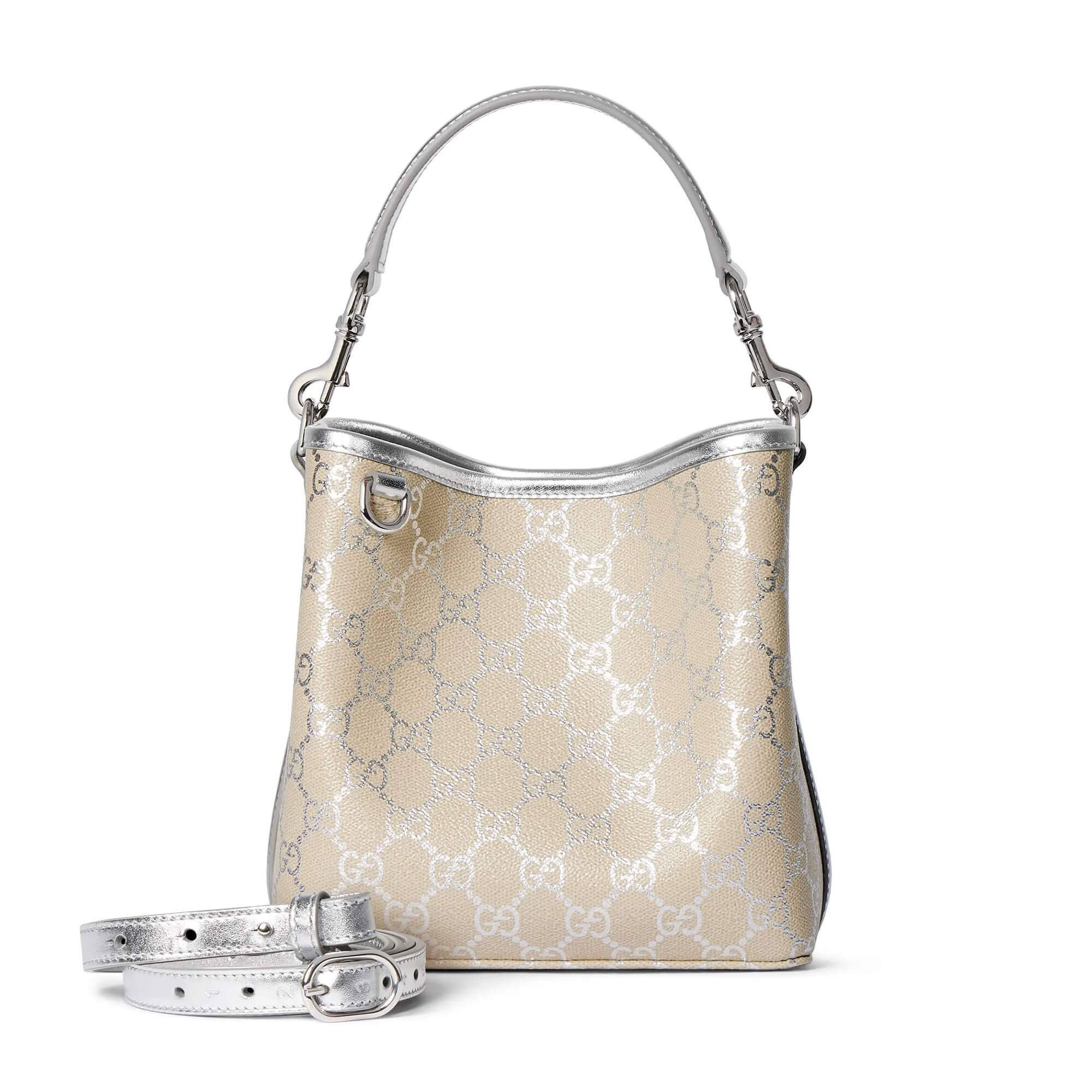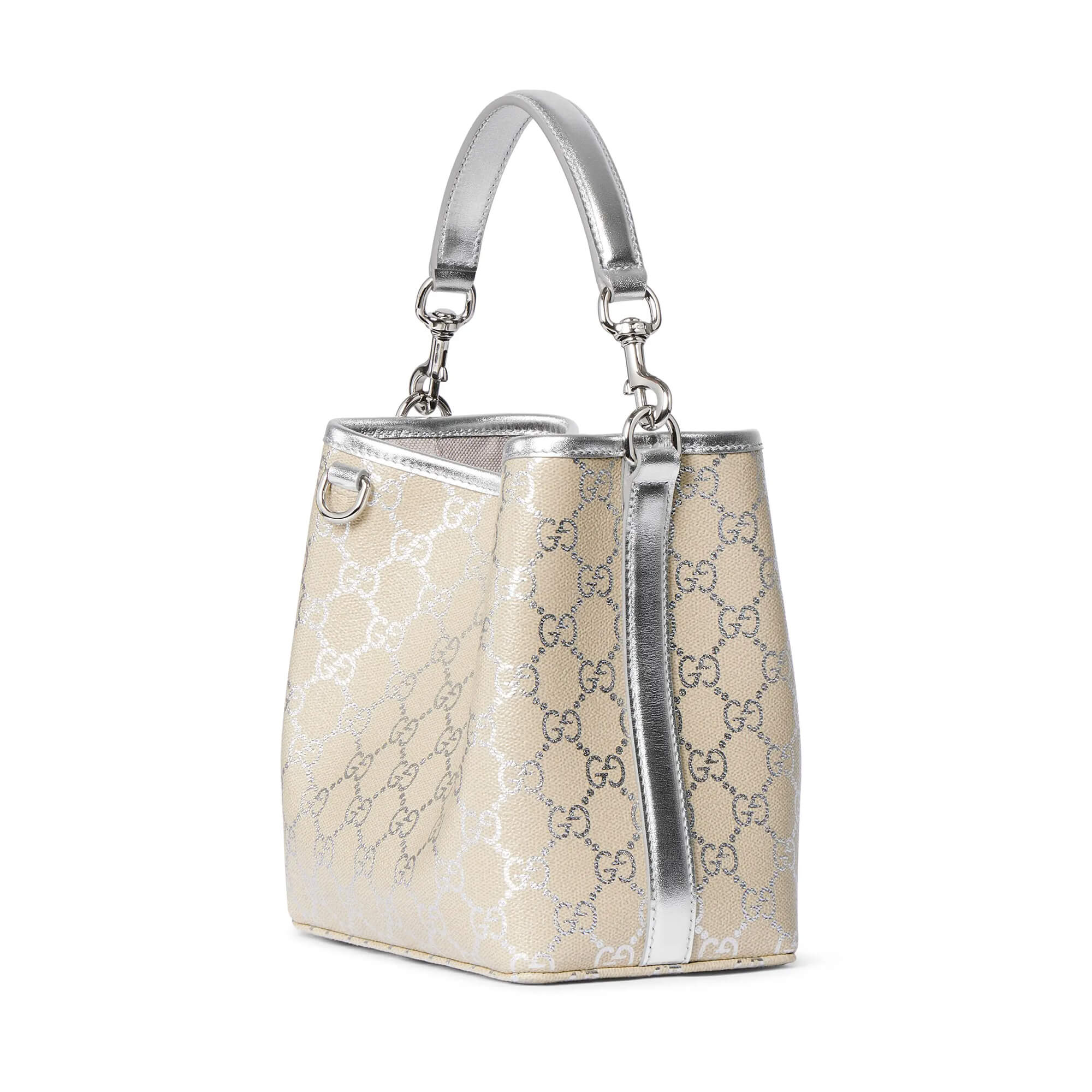 אריג מצופה GG Monogram בגימור למינציה בצבע בז׳ בהיר וכסף מטאלי