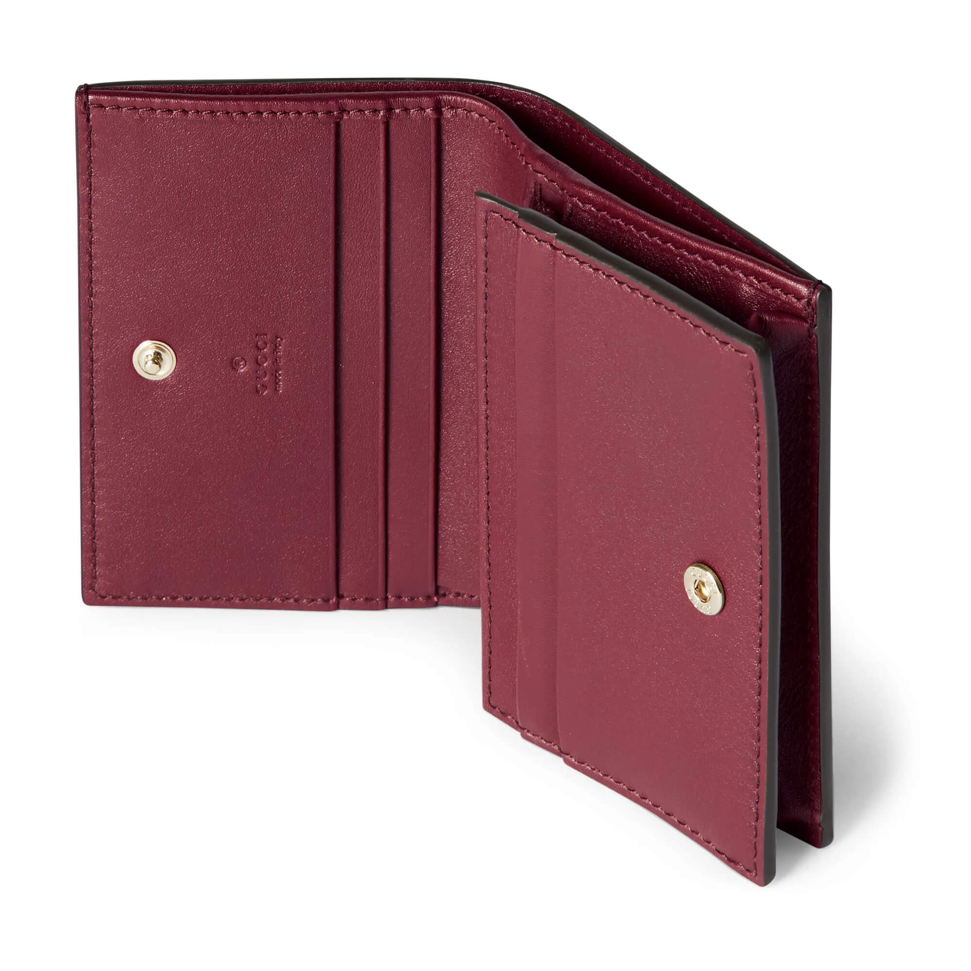5 card slots, open pocket, 1 zipper pocket, 1 bill compartment
