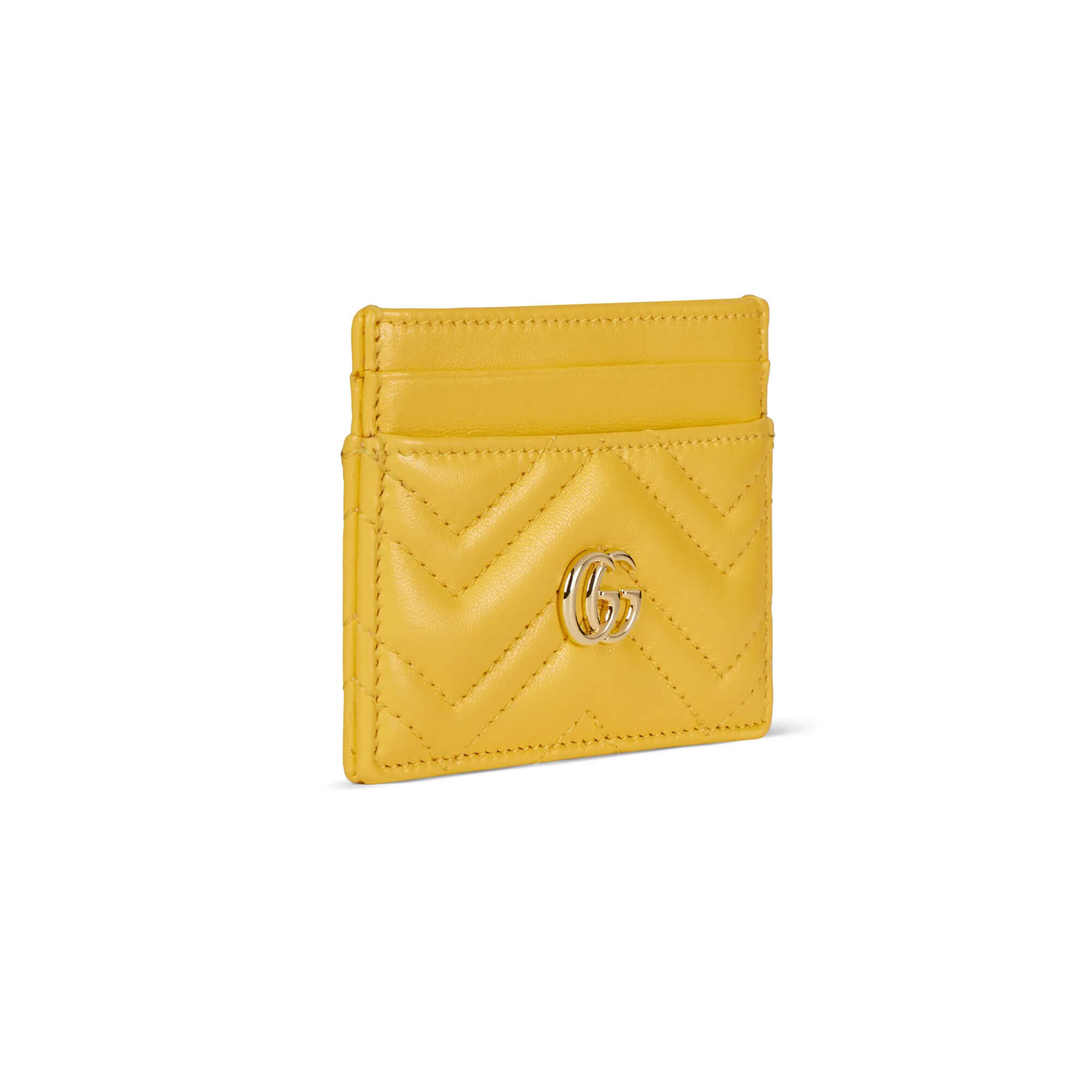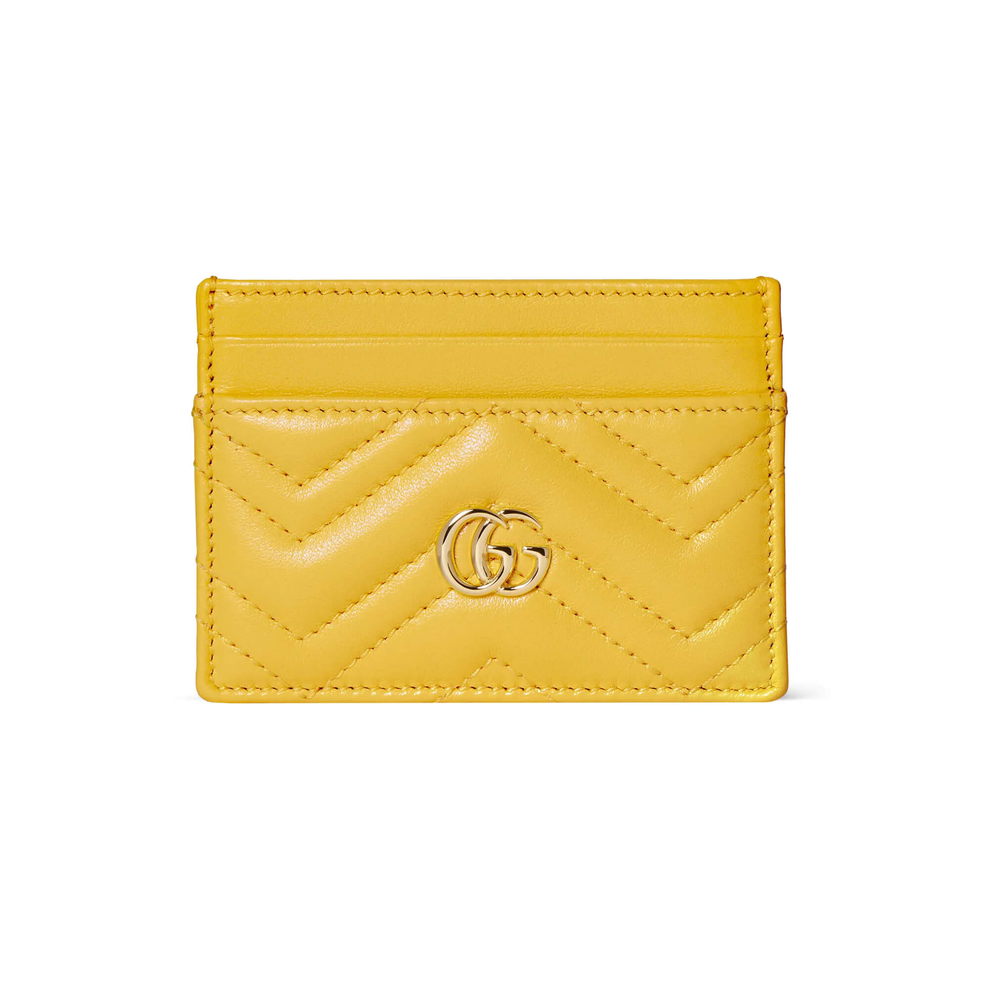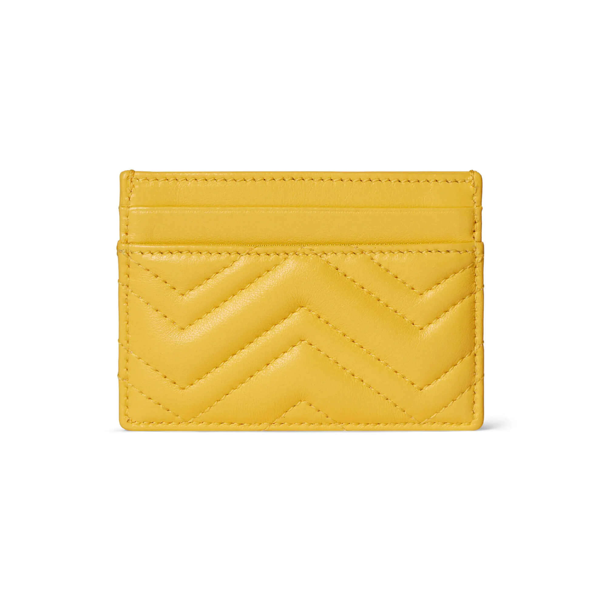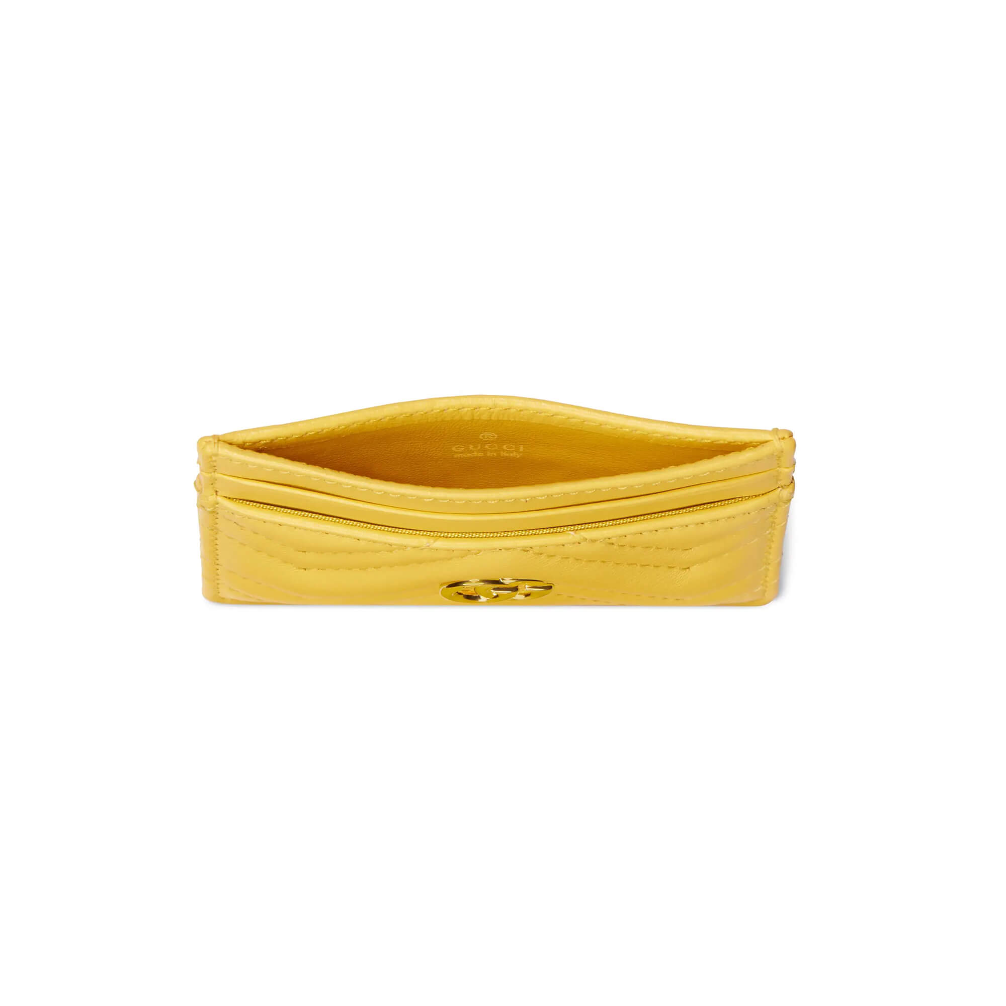 ארנק כרטיסים מעור נאפה matelassé עם תיפורים בדוגמת שברון בצבע צהוב