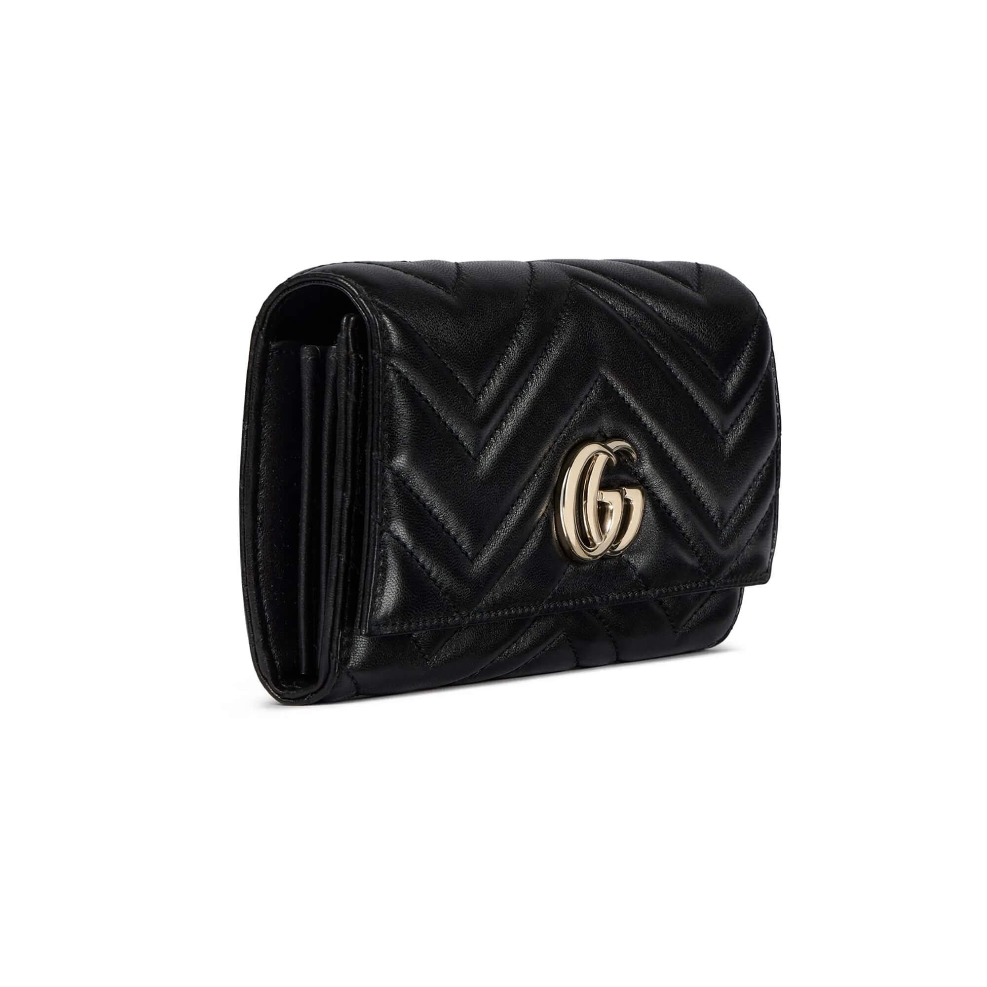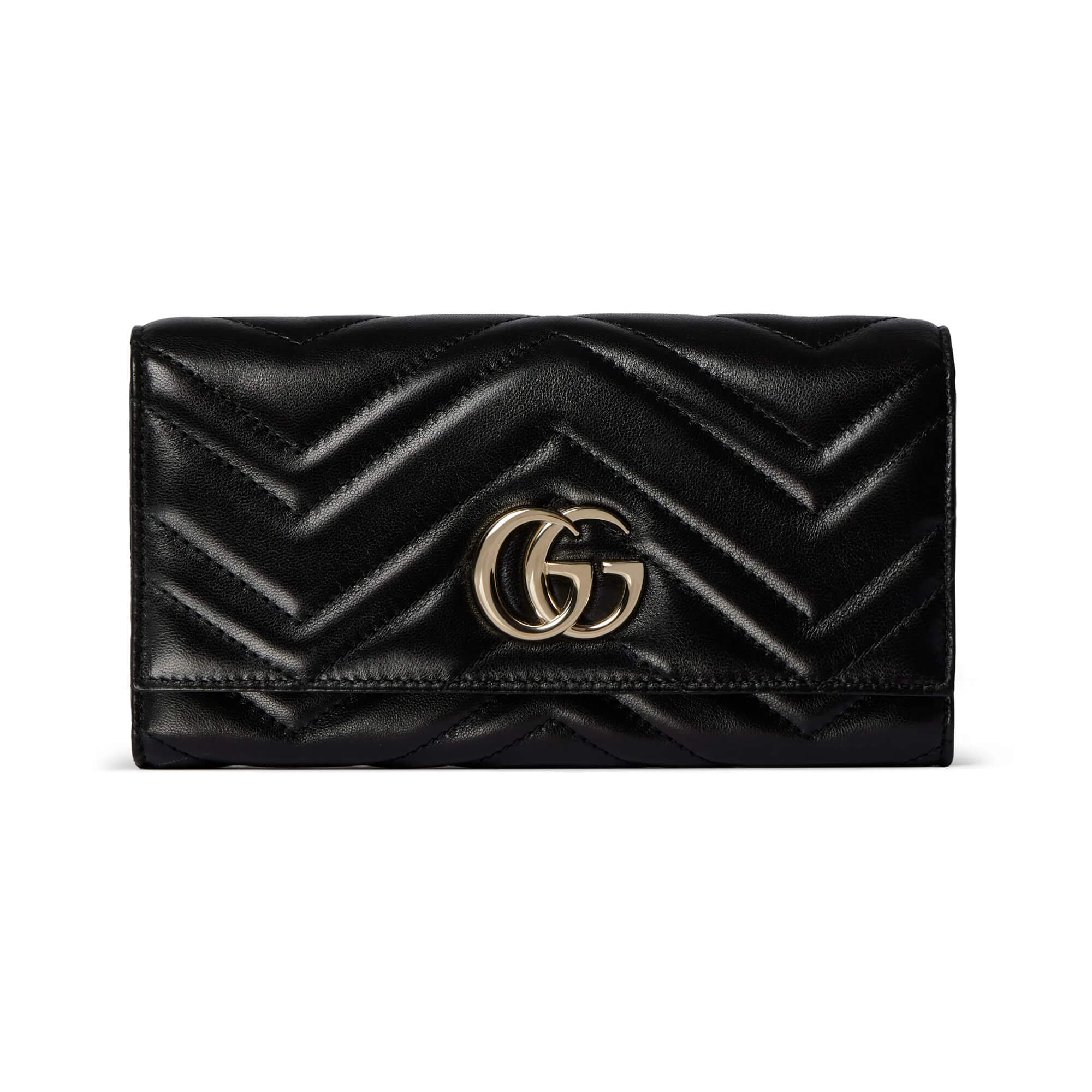 ארנק מעור נאפה matelassé עם תיפורים בדוגמת שברון בצבע שחור