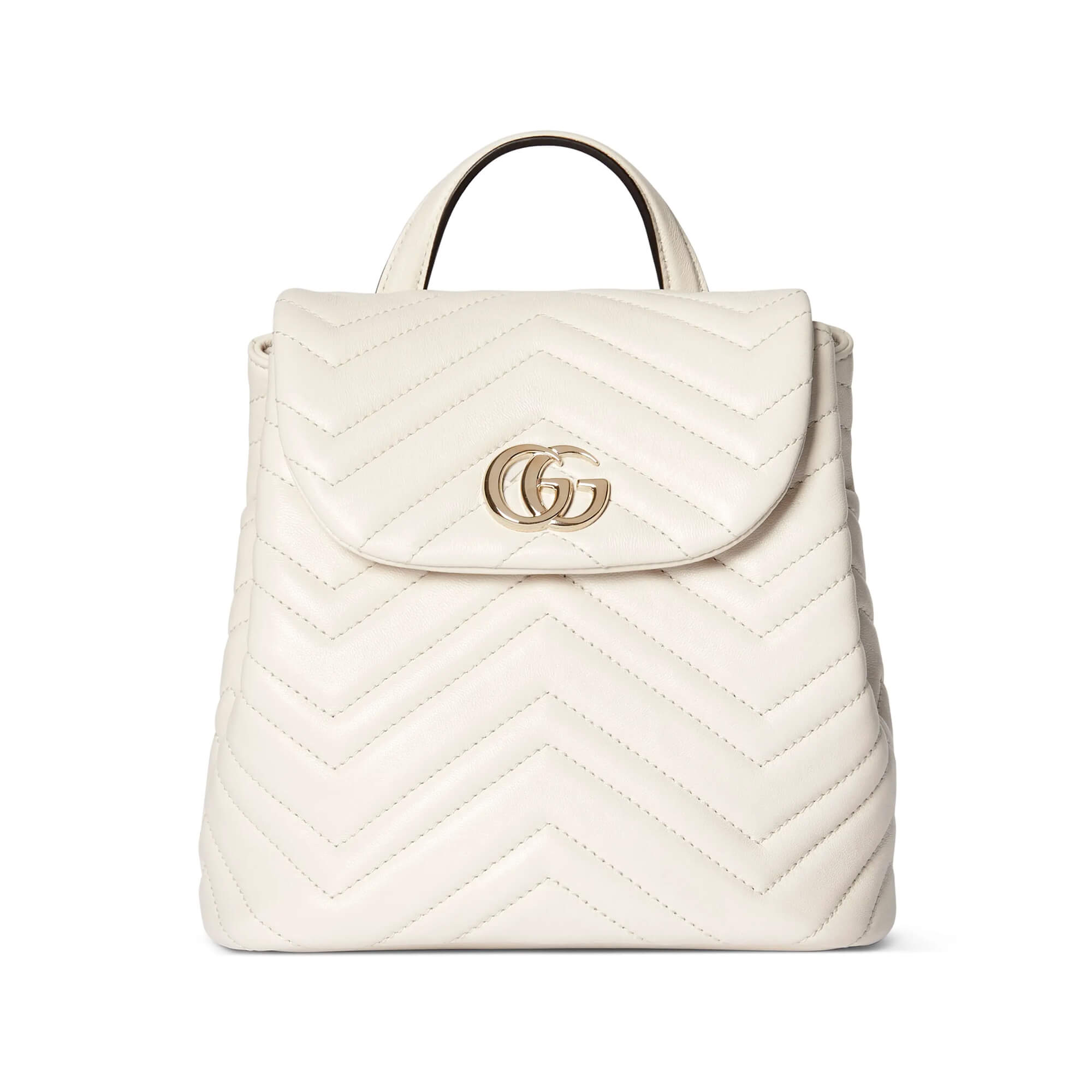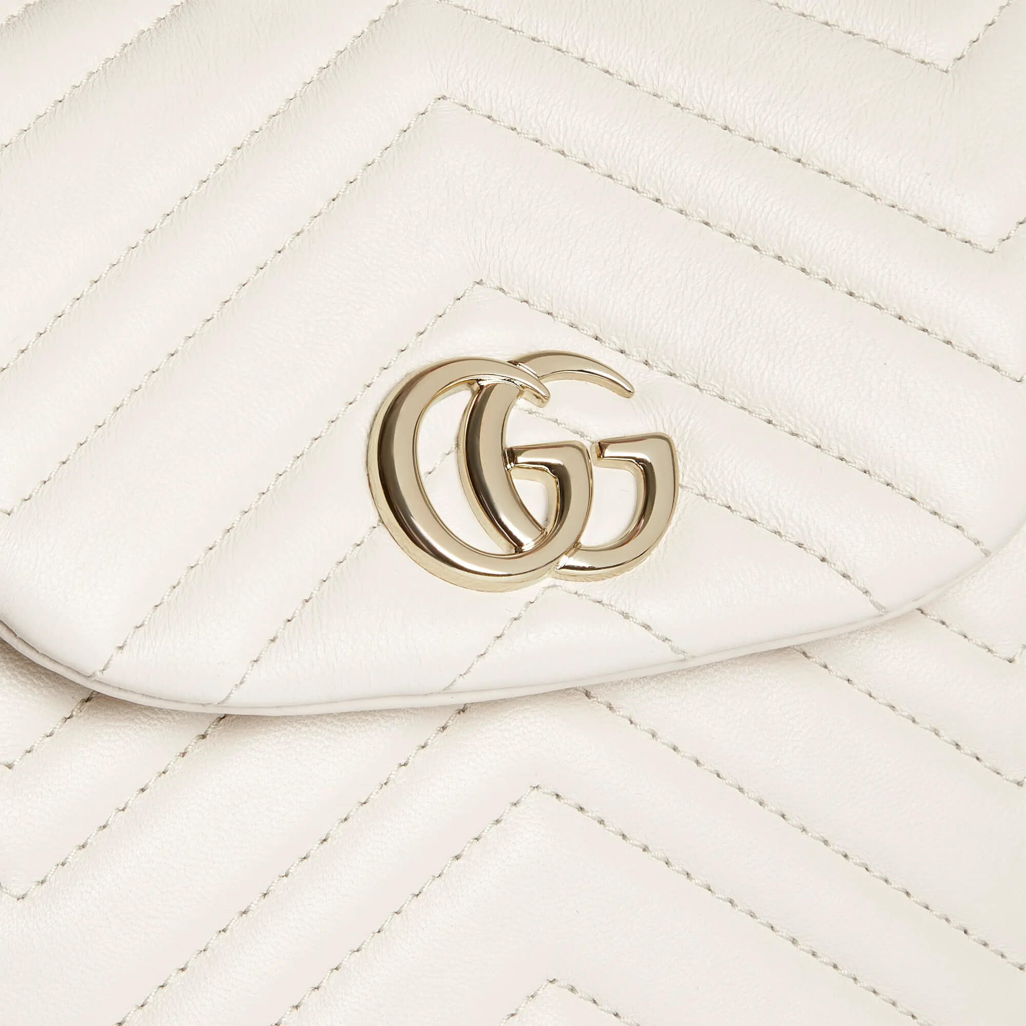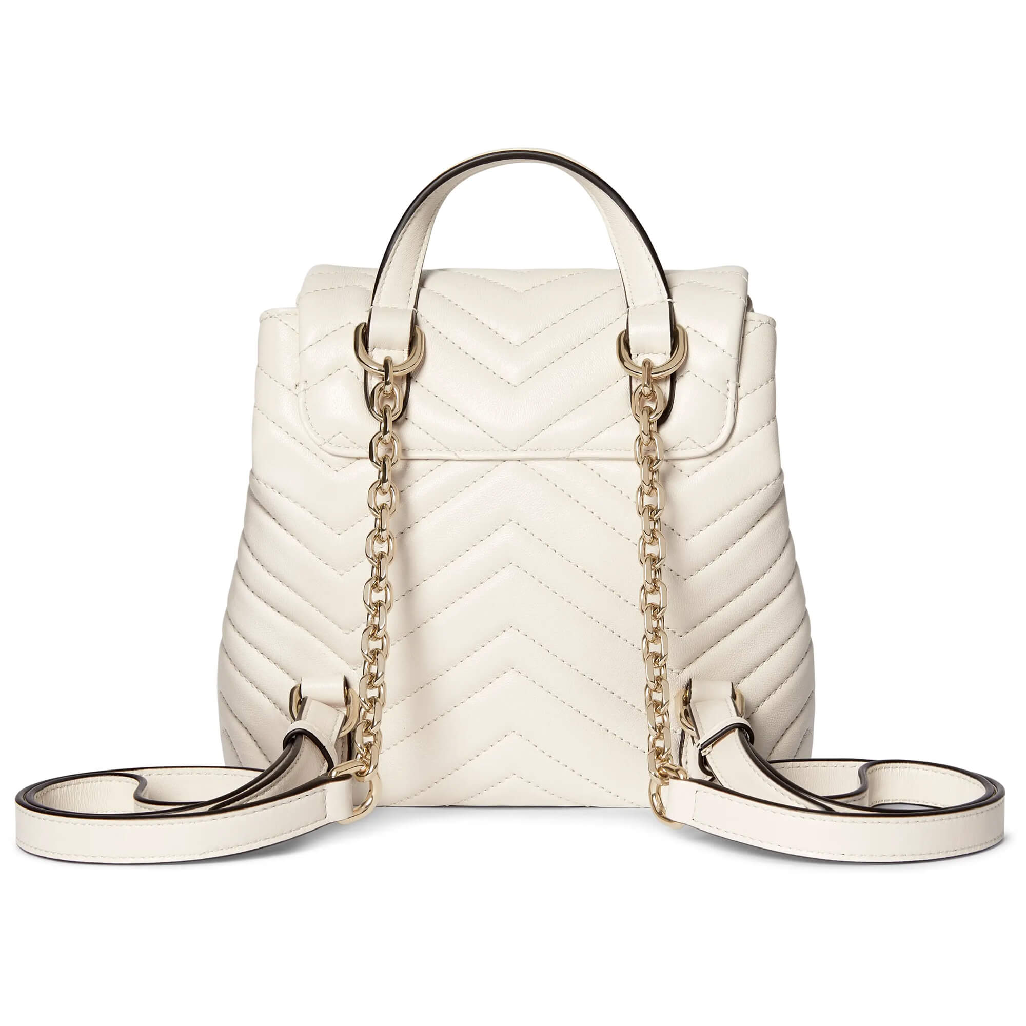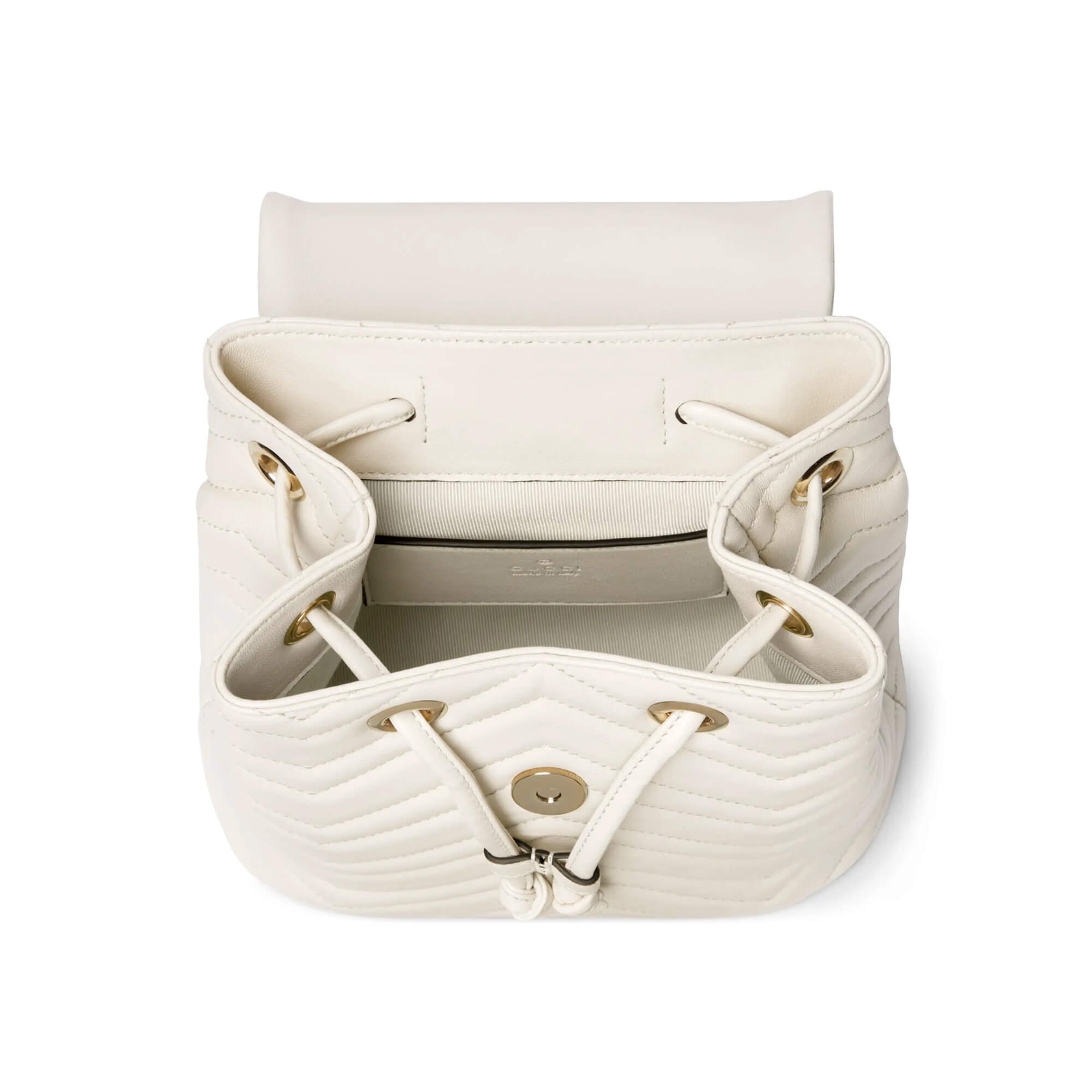 עשוי מעור נאפה לבן עם תיפורי Matelassé בדוגמת שברון