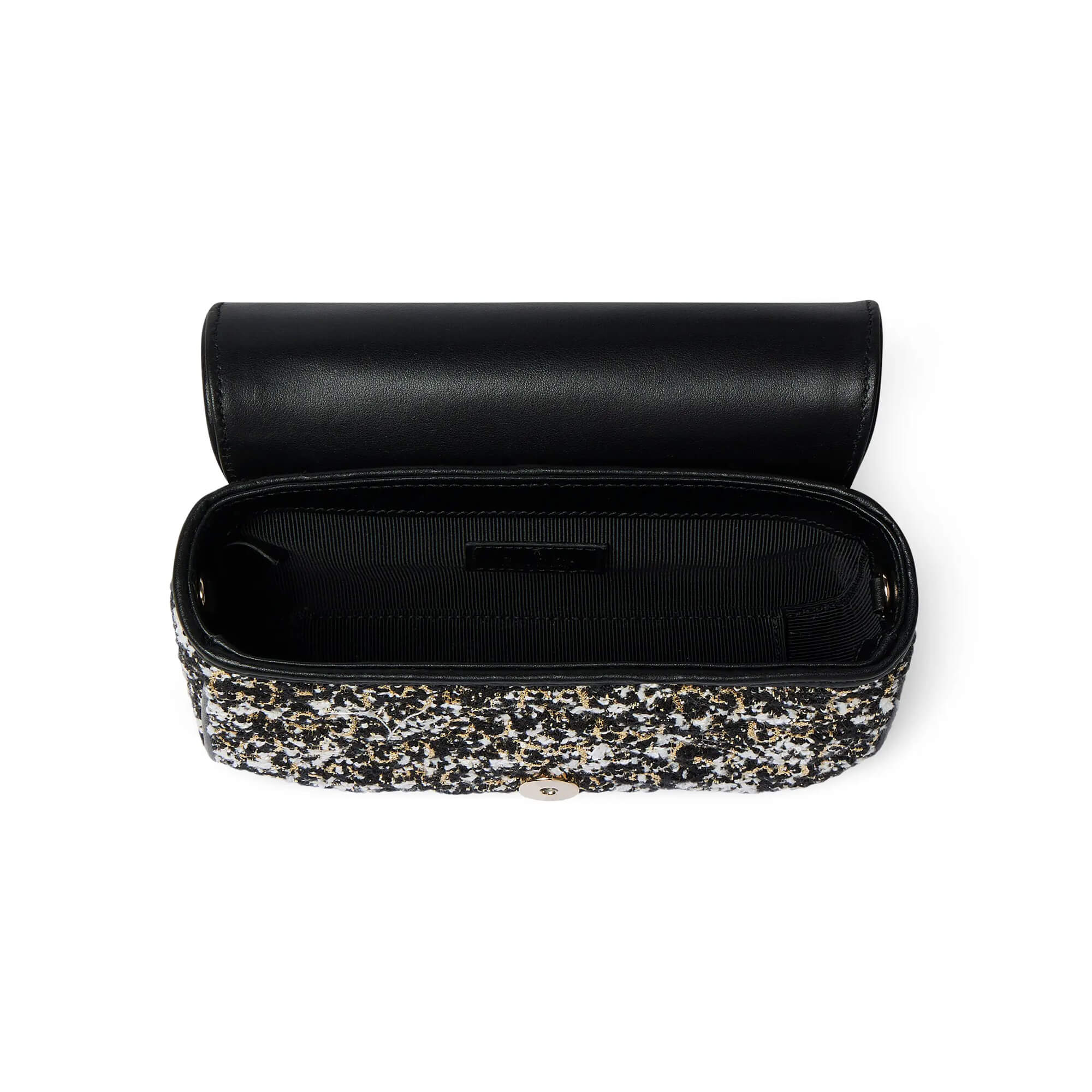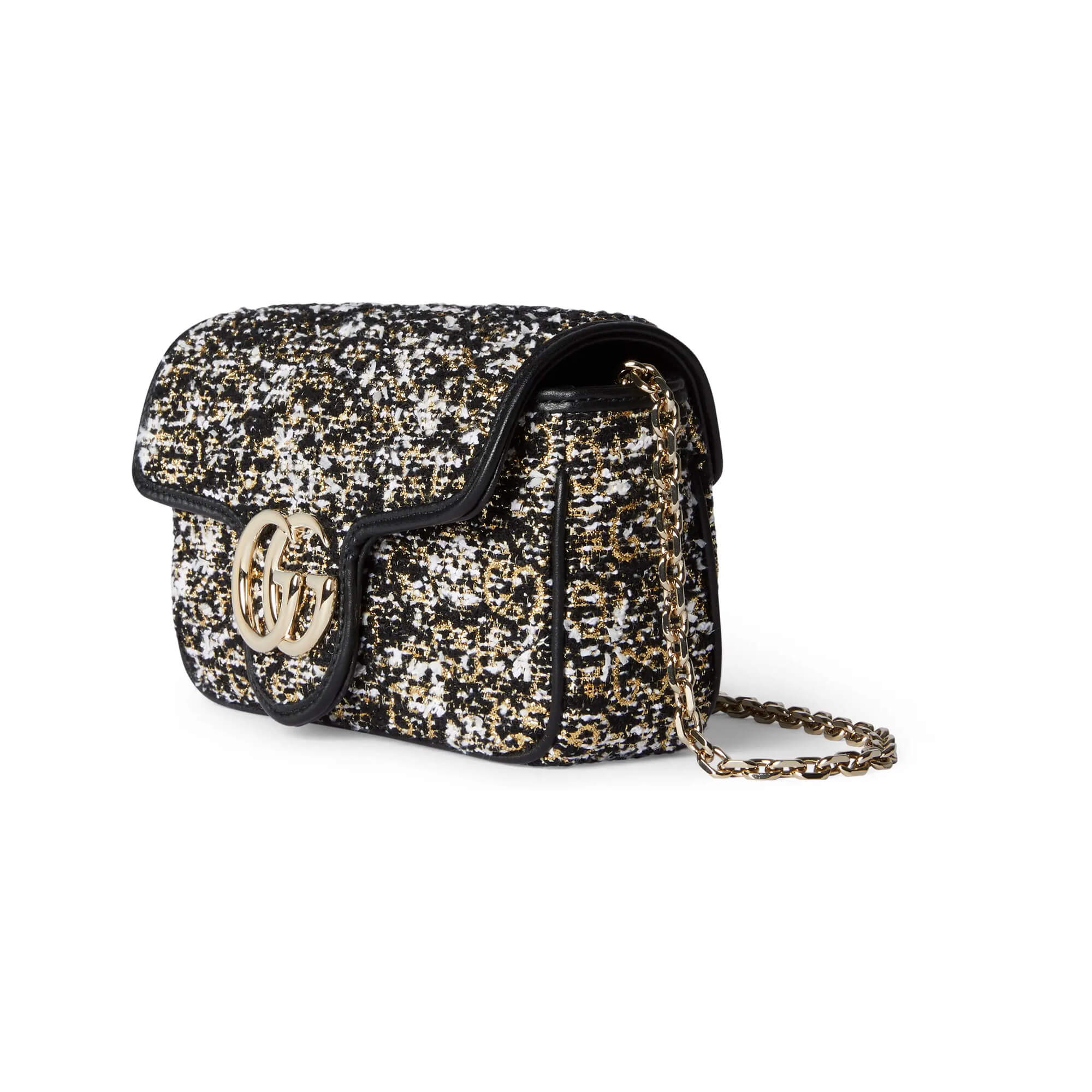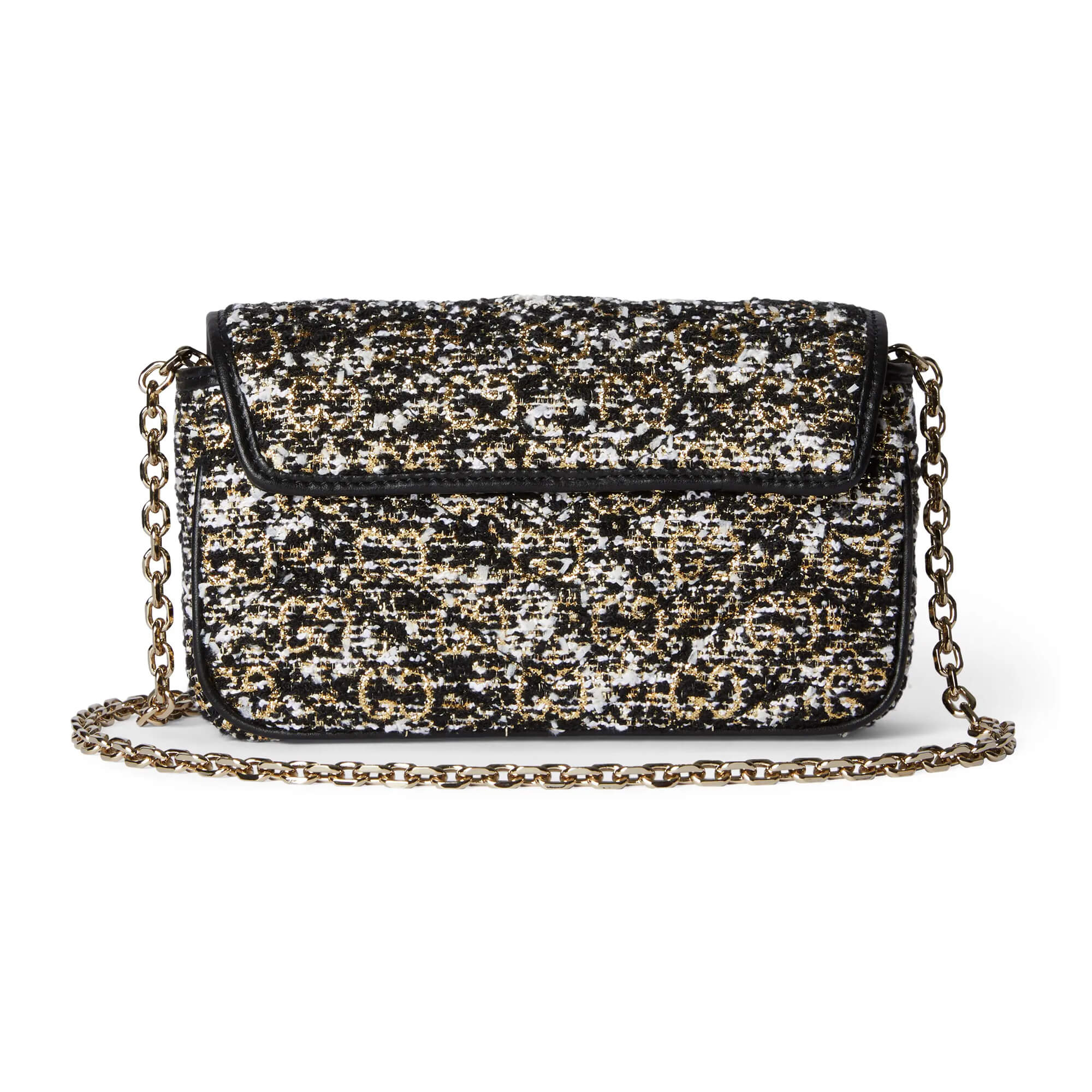 אריג טוויד GG רך בצבע שחור עיטור עור שחור
