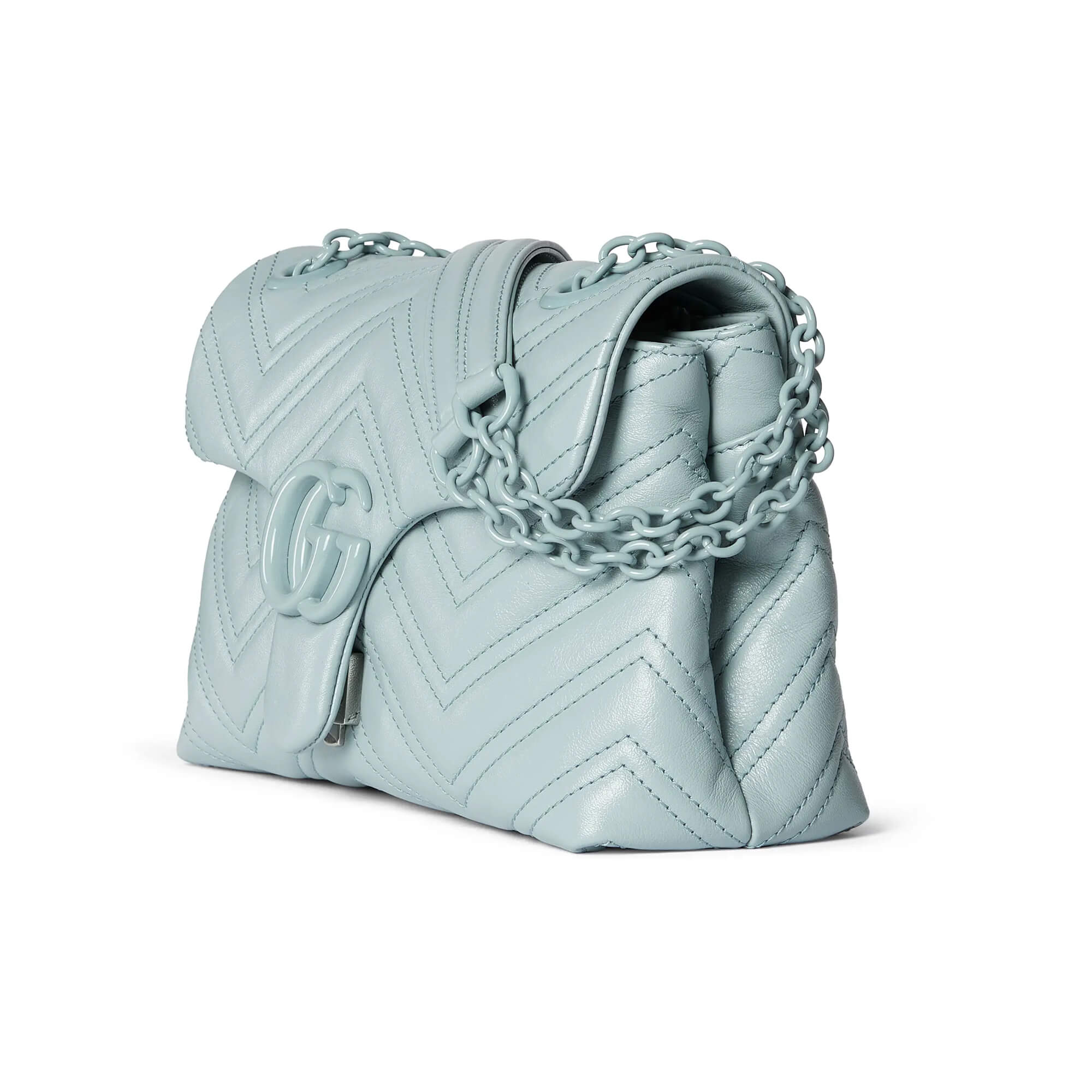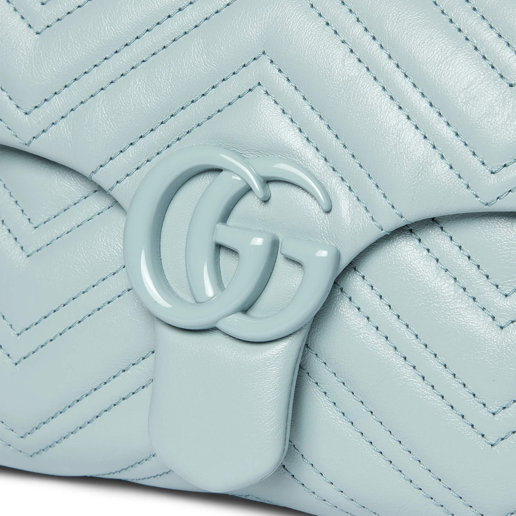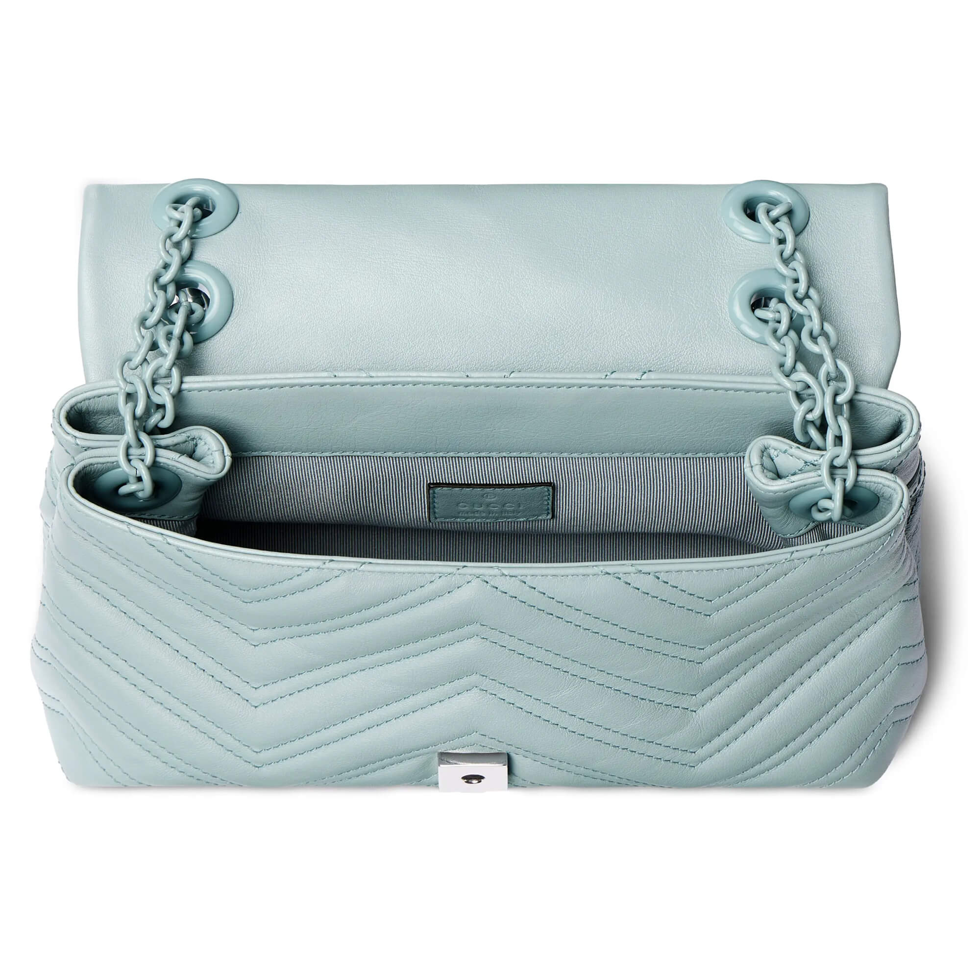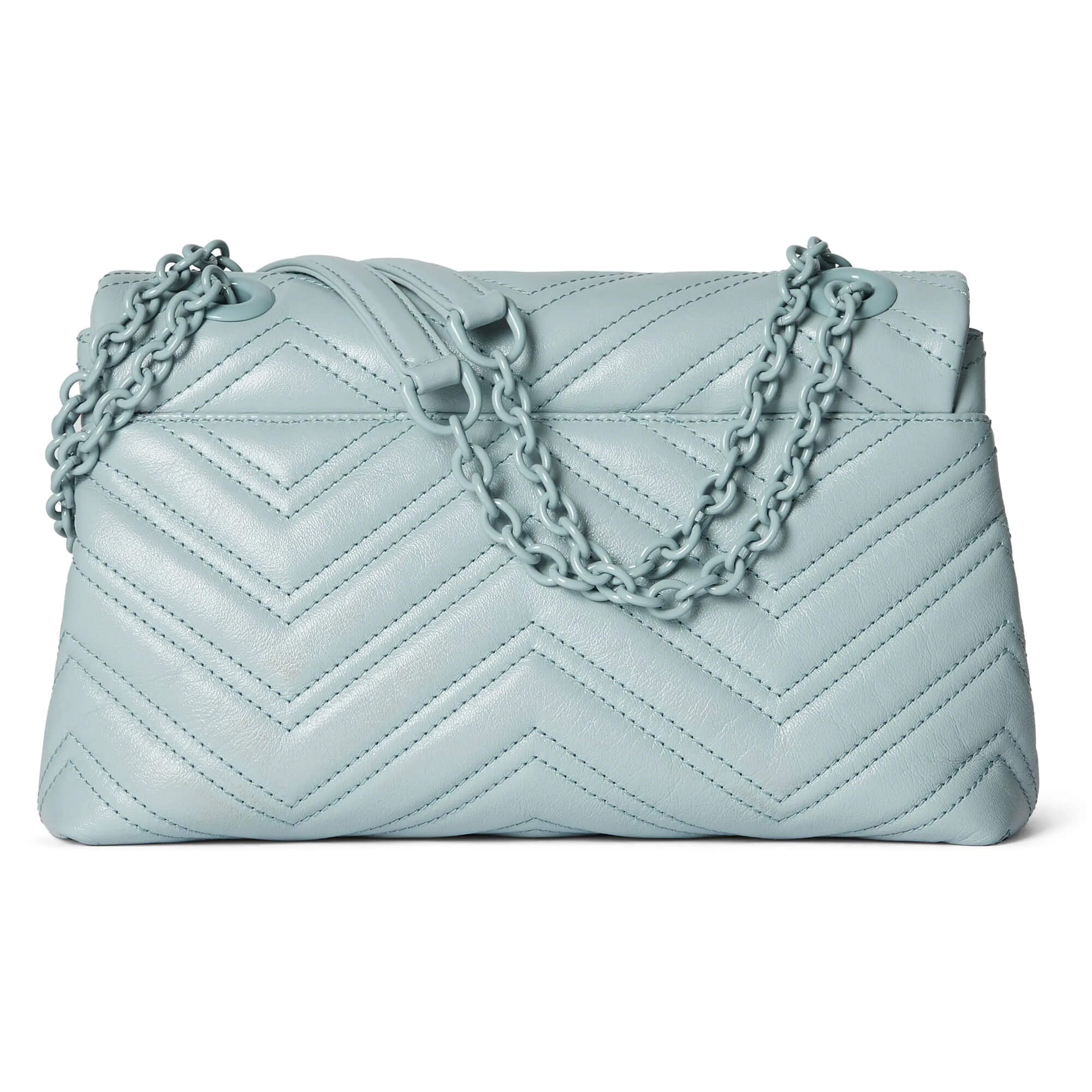 עור נאפה matelassé עם תיפורים בדוגמת שברון בצבע תכלת