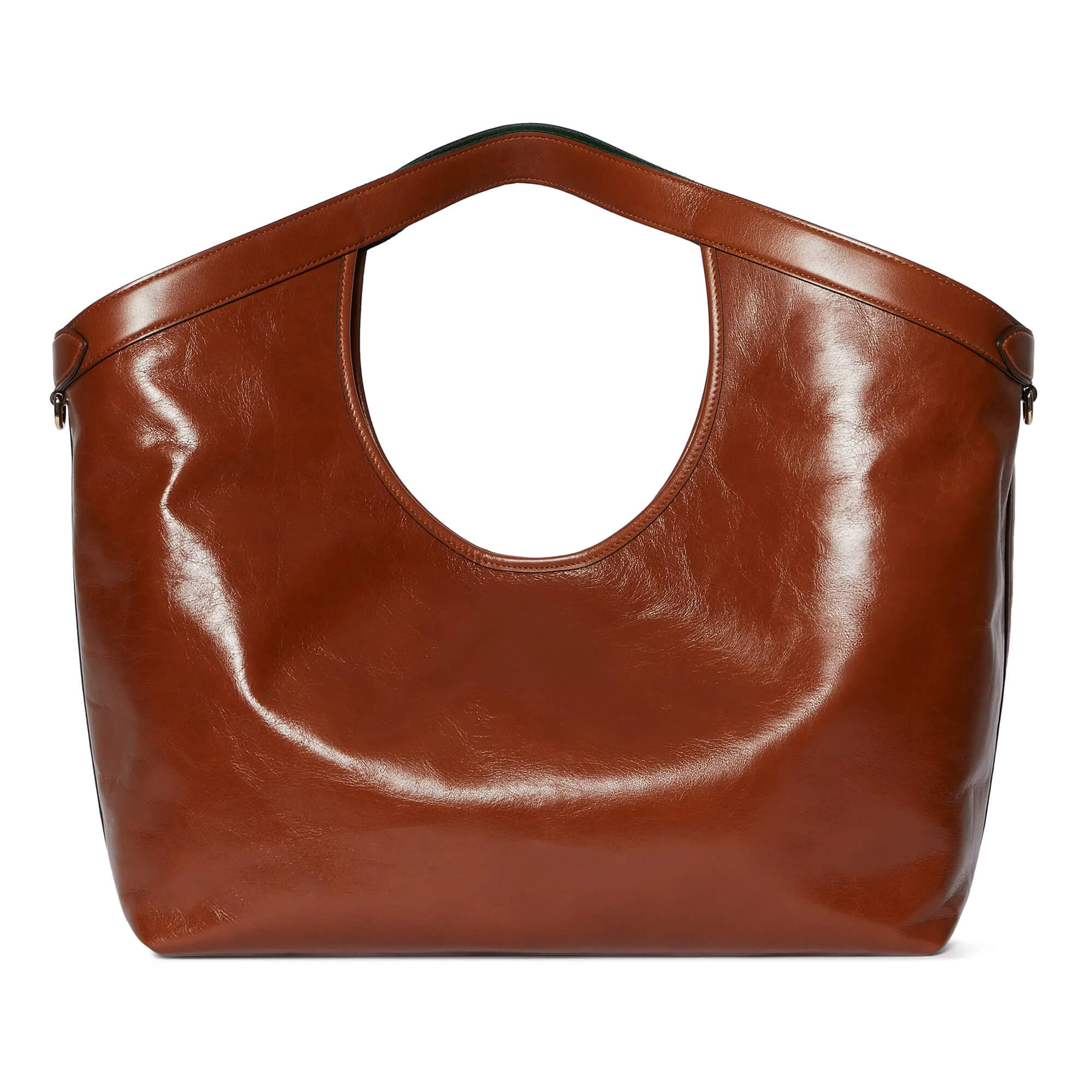 תיק גדול מעור רך מבריק בצבע חום כהה