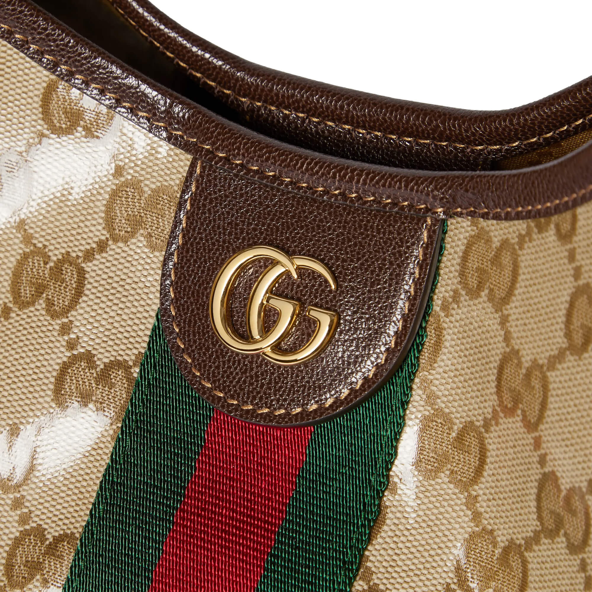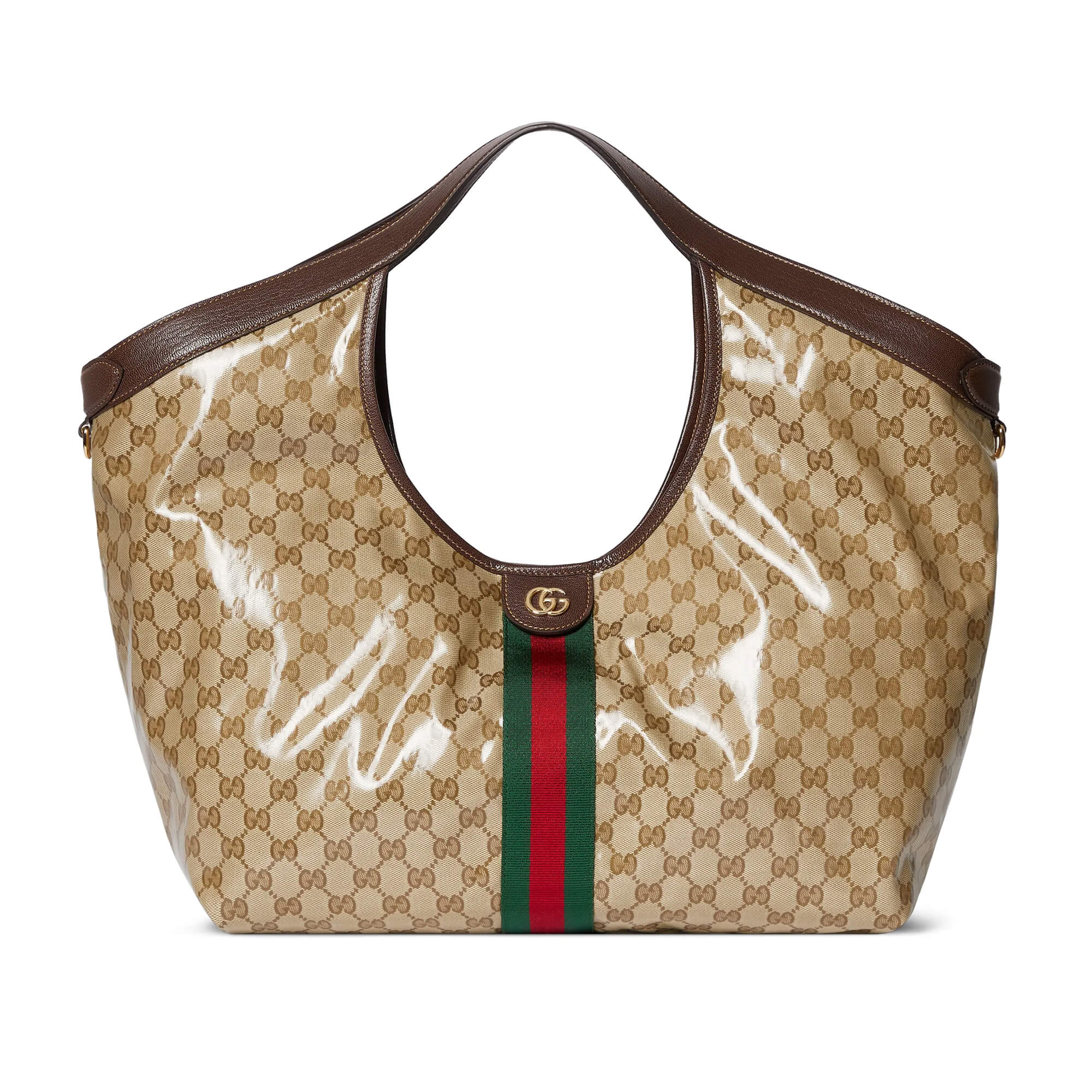 תיק גדול מאריג GG רך מצופה ומבריק בצבע חול וחום