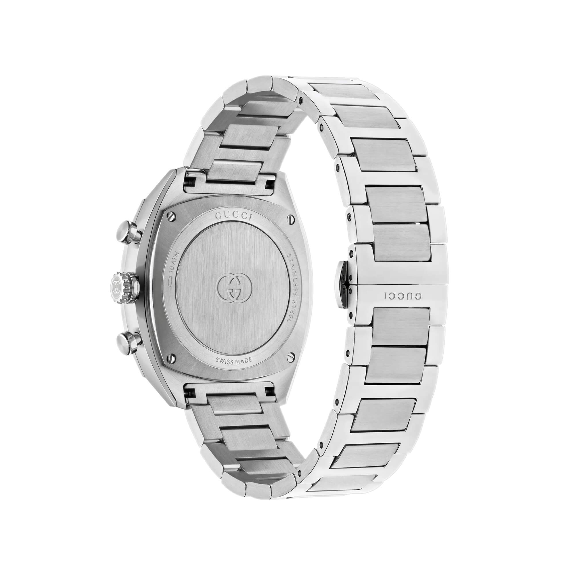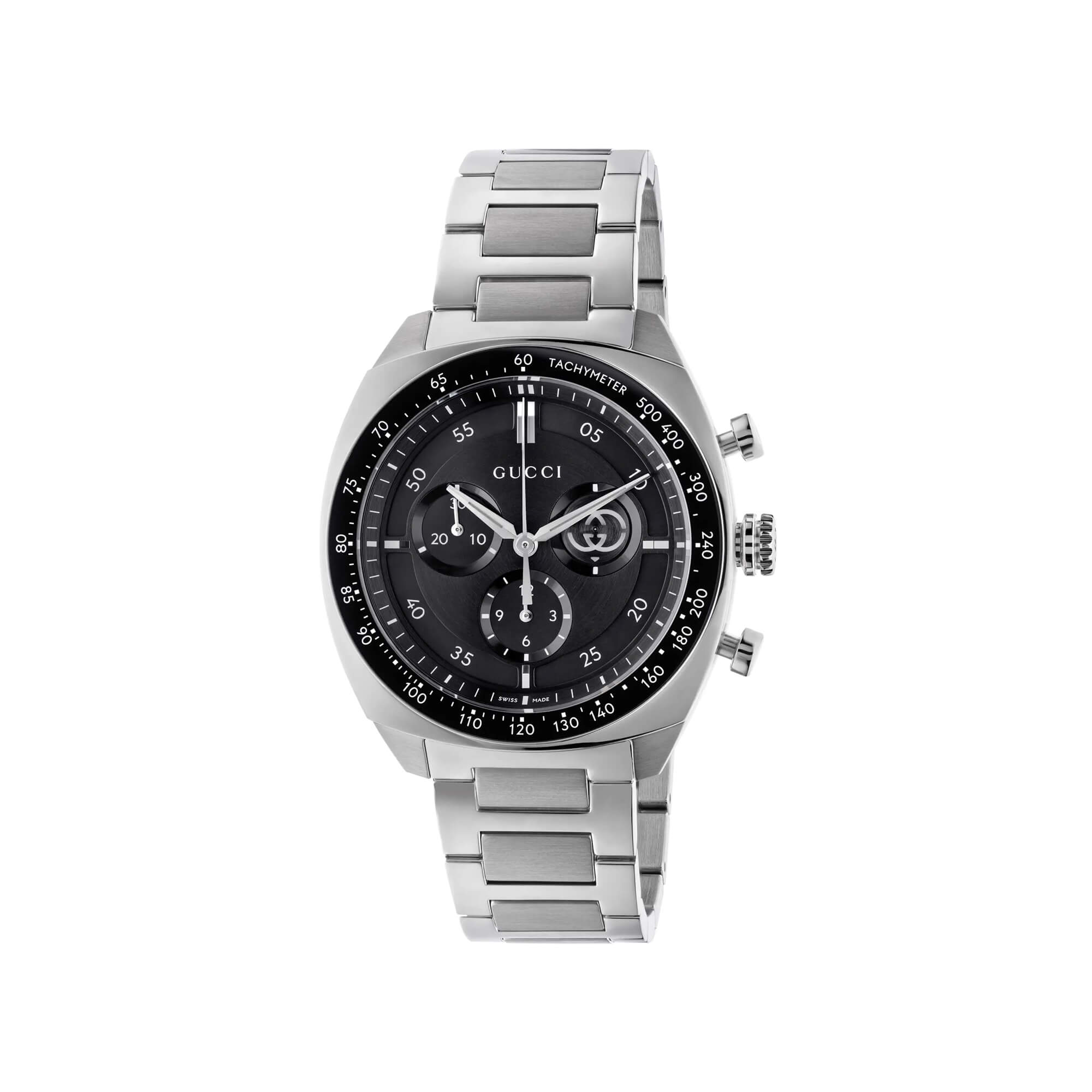 41mm stainless steel case, black dial, Interlocking G small seconds display, black ceramic bezel with tachymeter indication, stainless steel bracelet