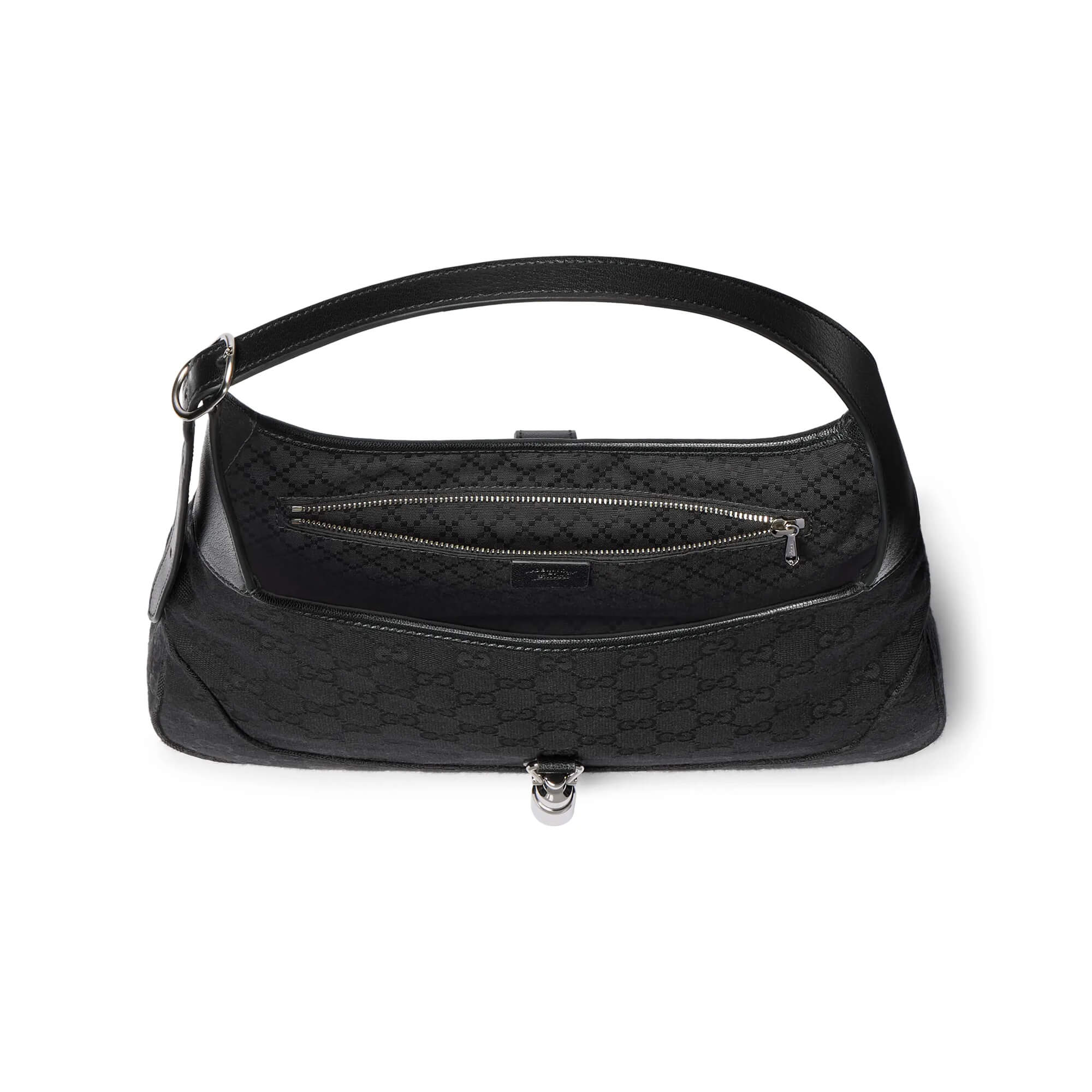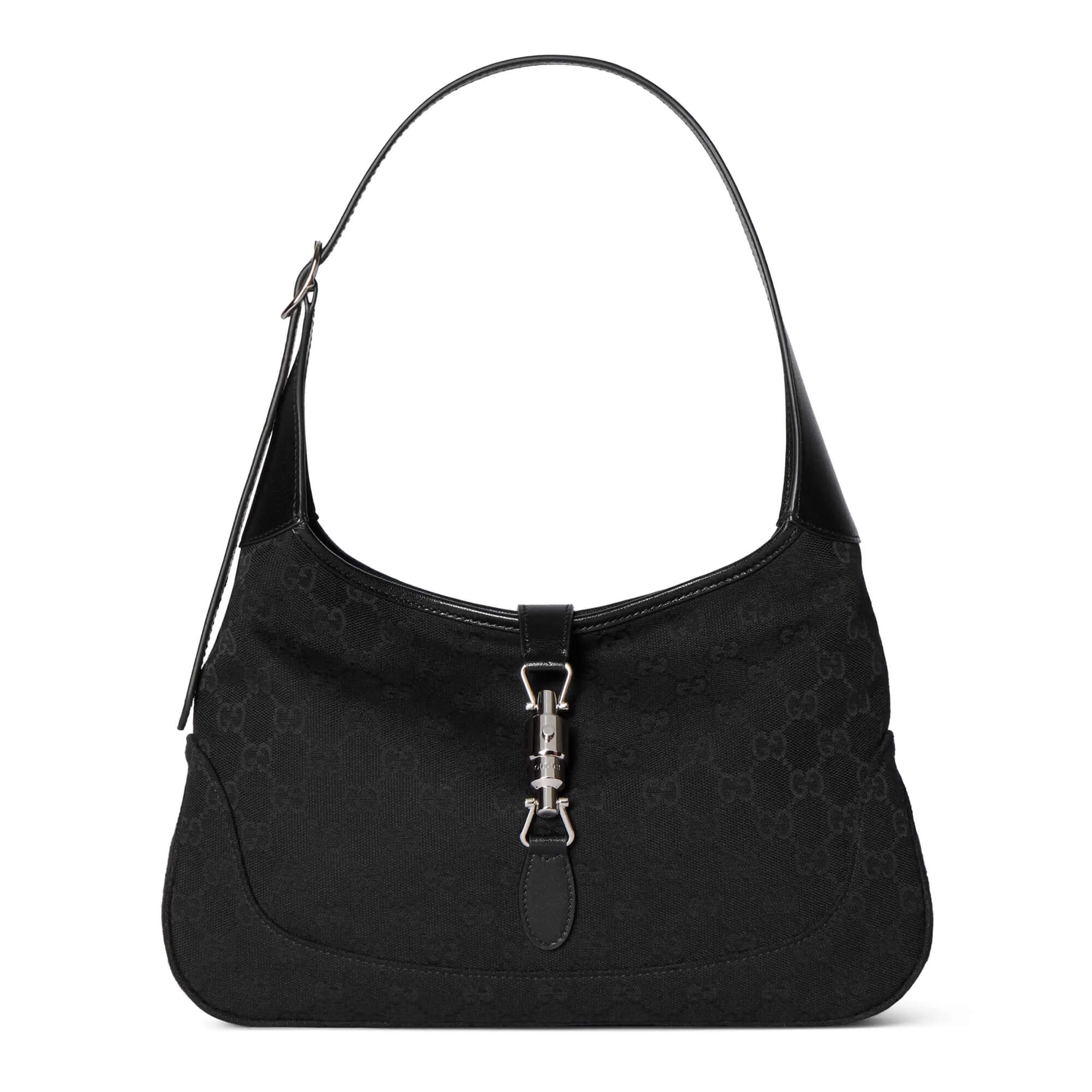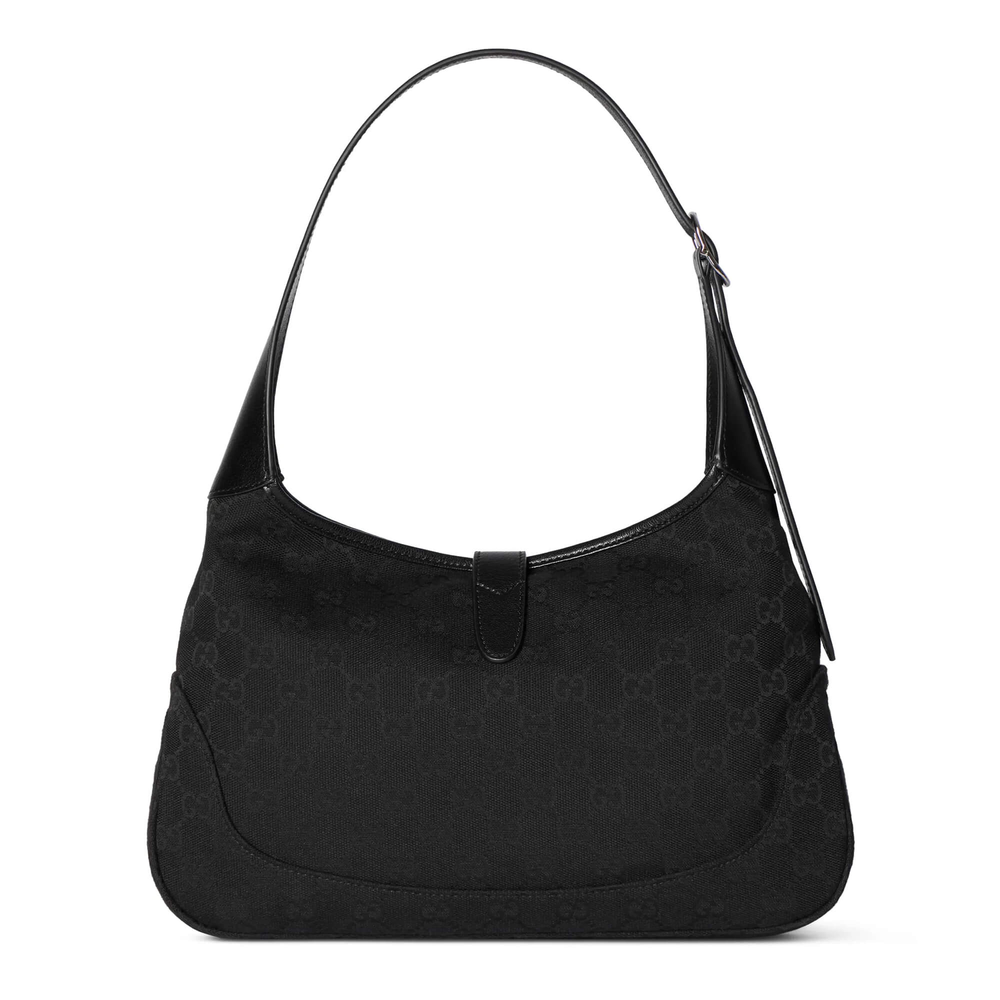 תיק בינוני מבד קנבס GG בצבע שחור בשילוב עור grainy רך בצבע שחור