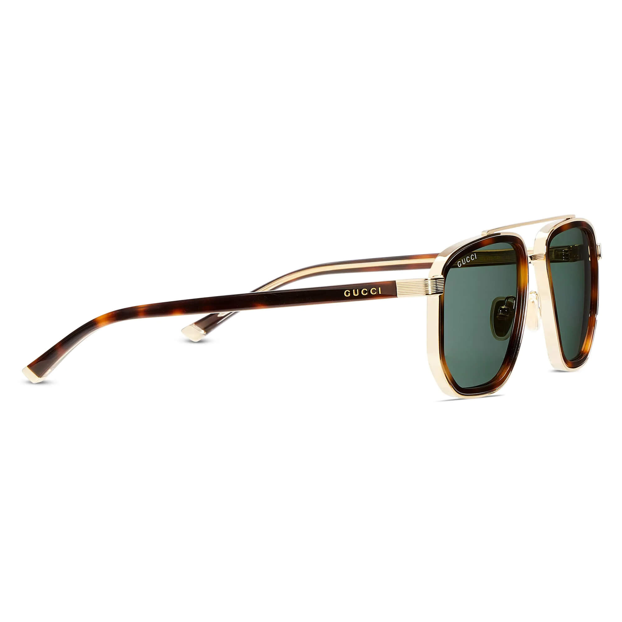 ידיות אצטט בדוגמת tortoiseshell בגוון חום כהה בשילוב מתכת בצבע זהב בהיר עם עיטור לוגו Gucci