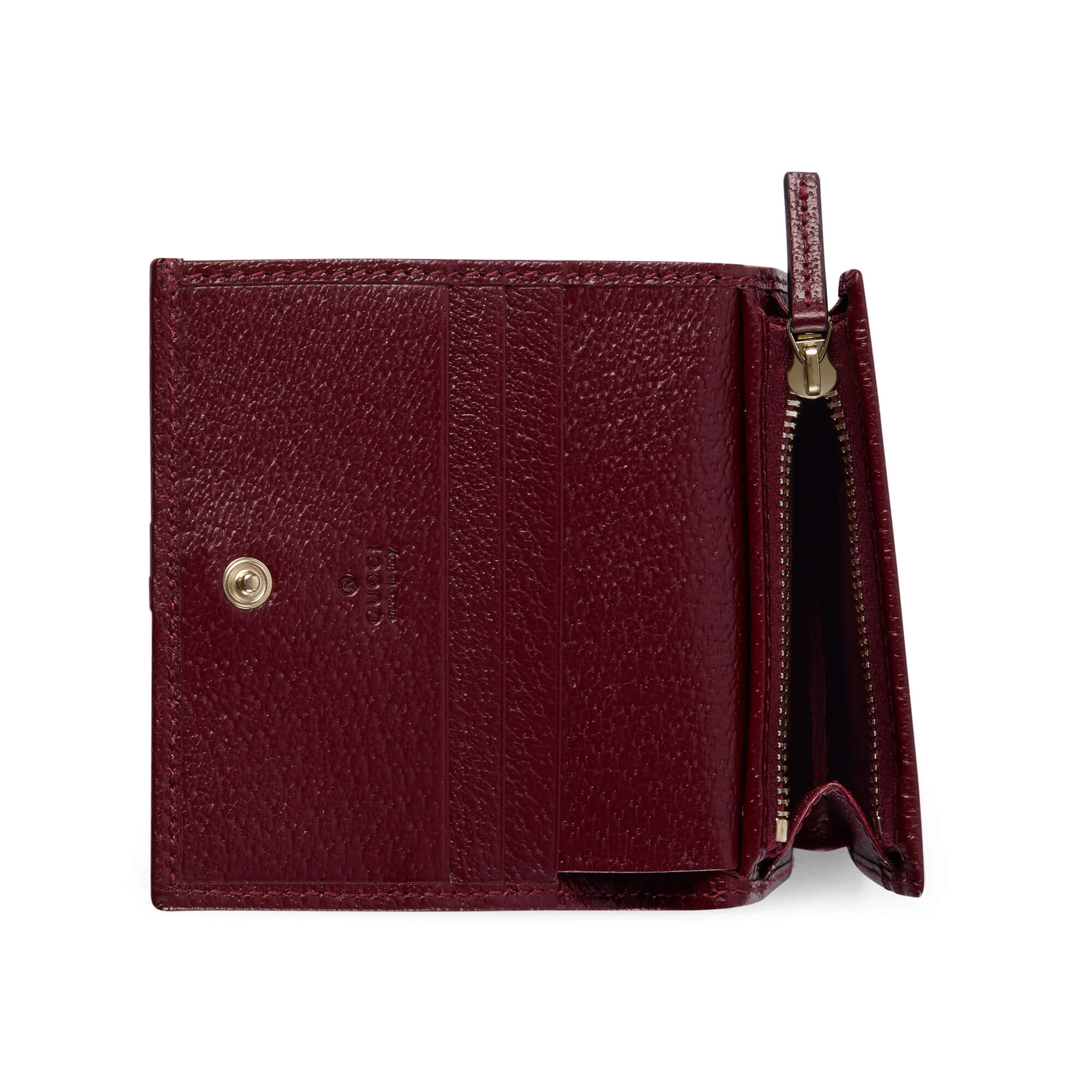 Inside: 5 card slots, 1 open pocket, 1 zip pocket, 1 bill compartment