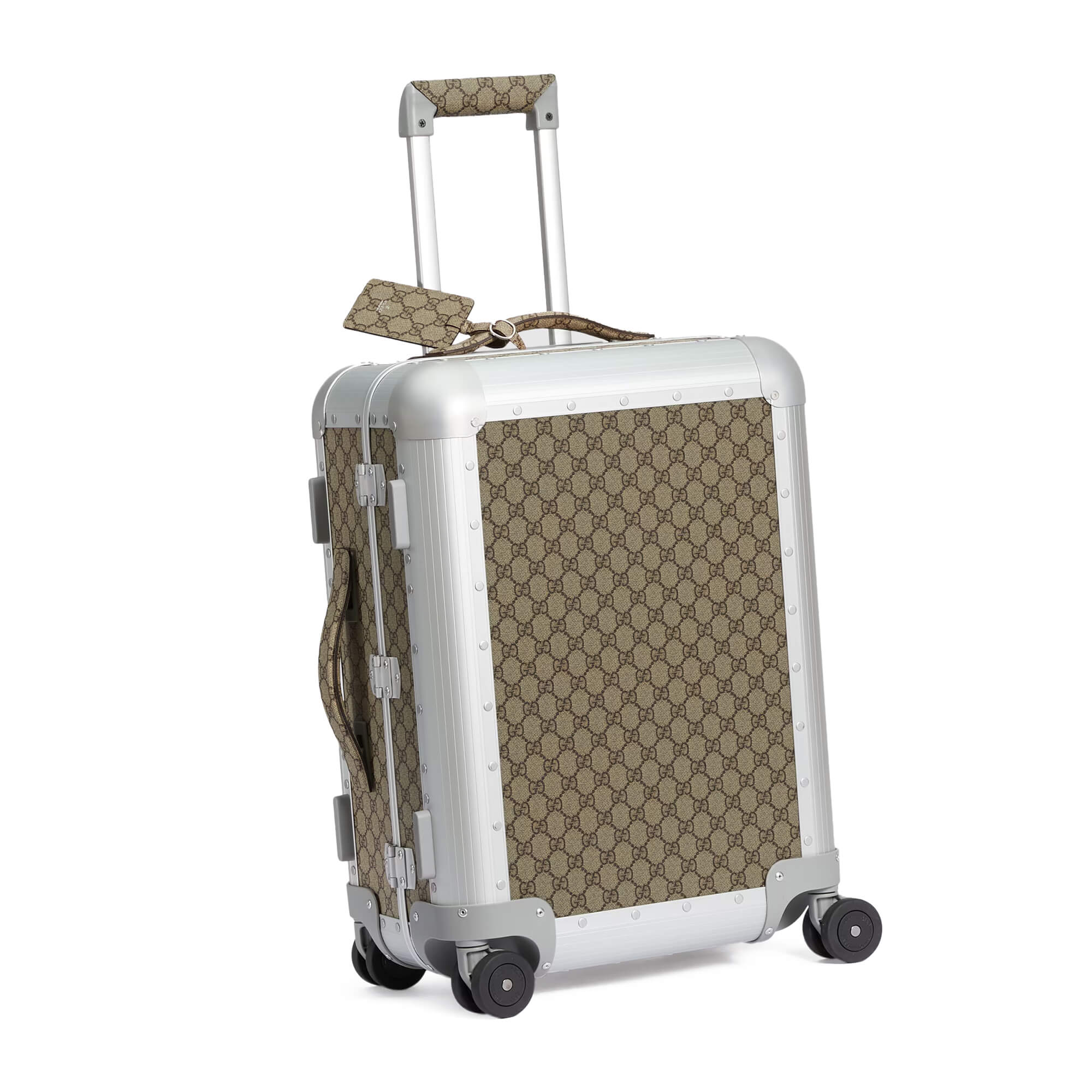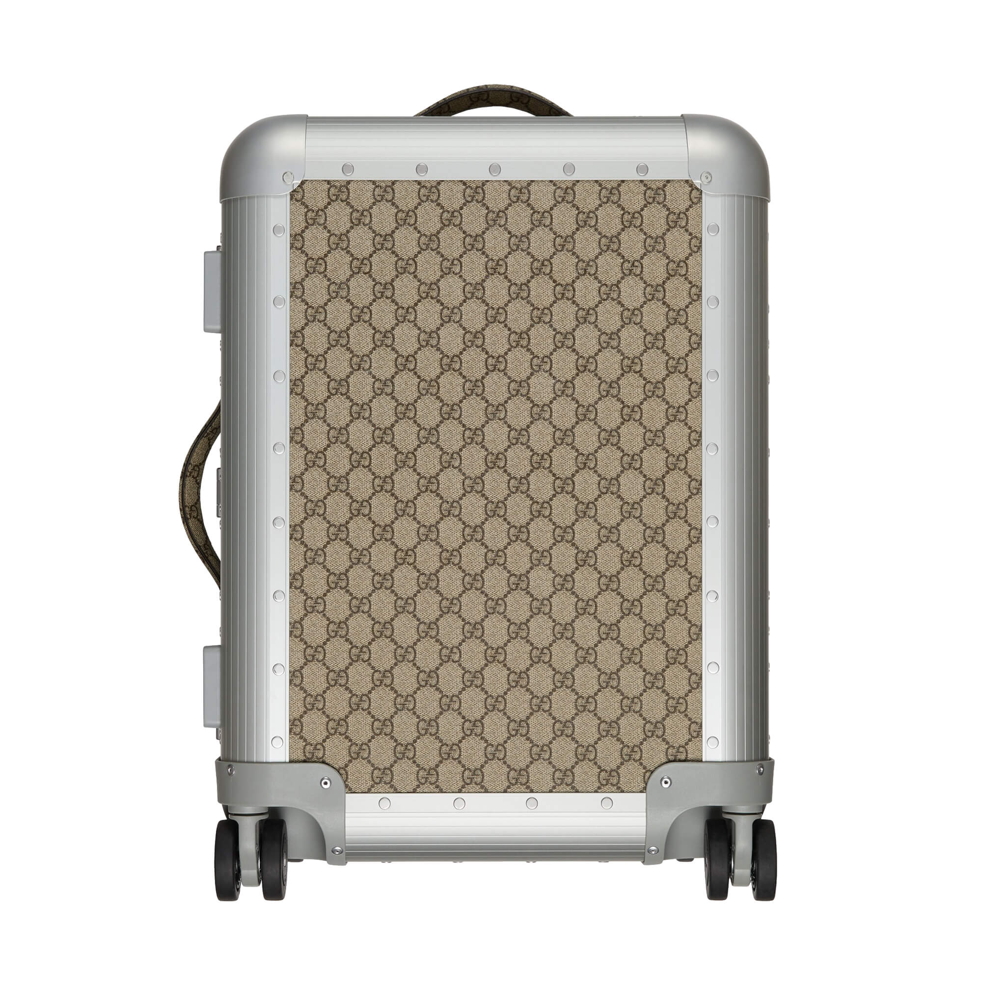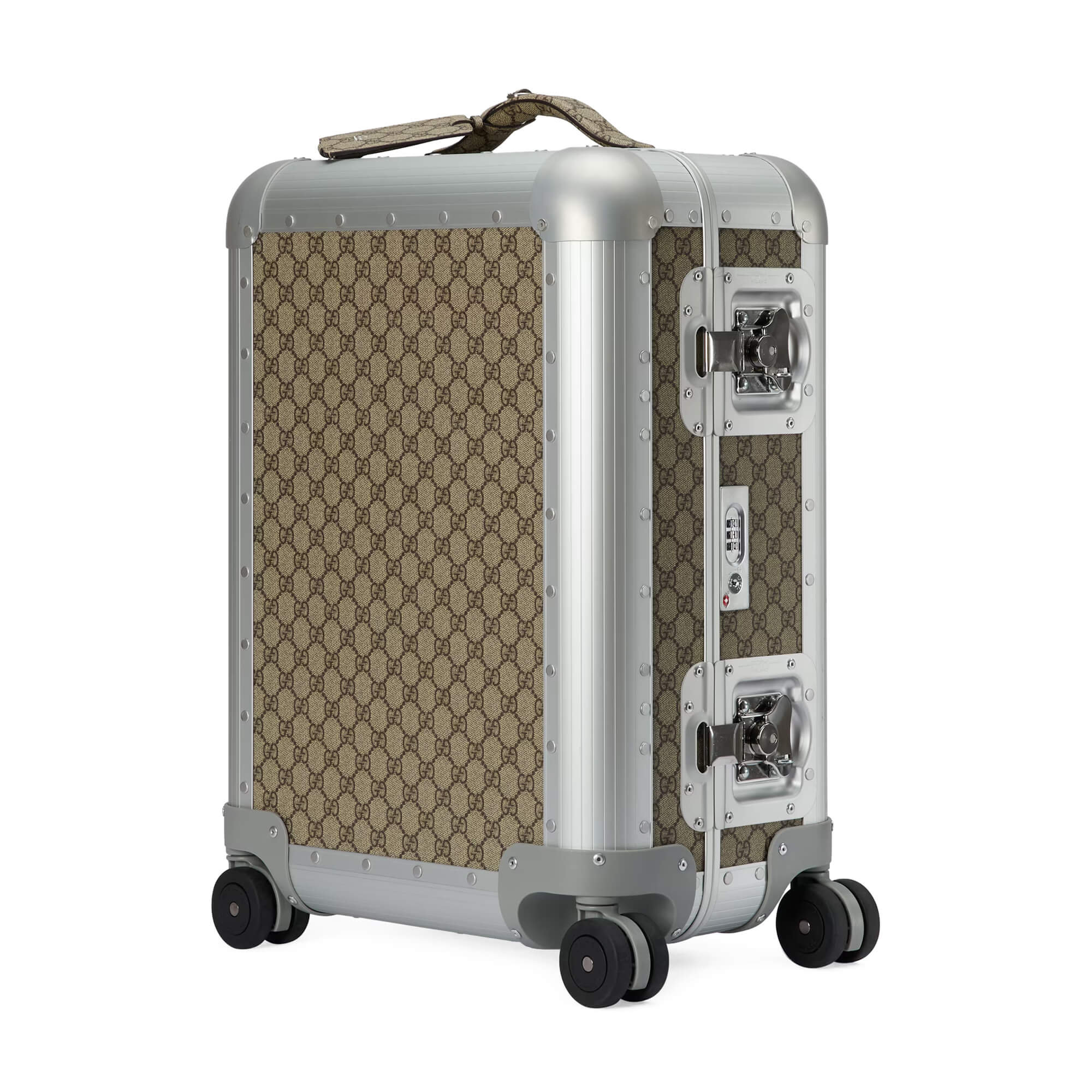 מזוות טרולי מאריג GG Supreme בצבע בז׳ וחום בשילוב אלומיניום כסוף