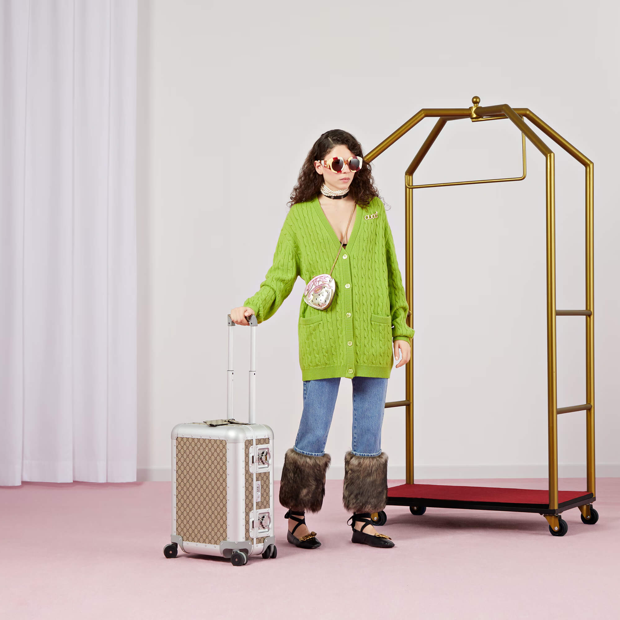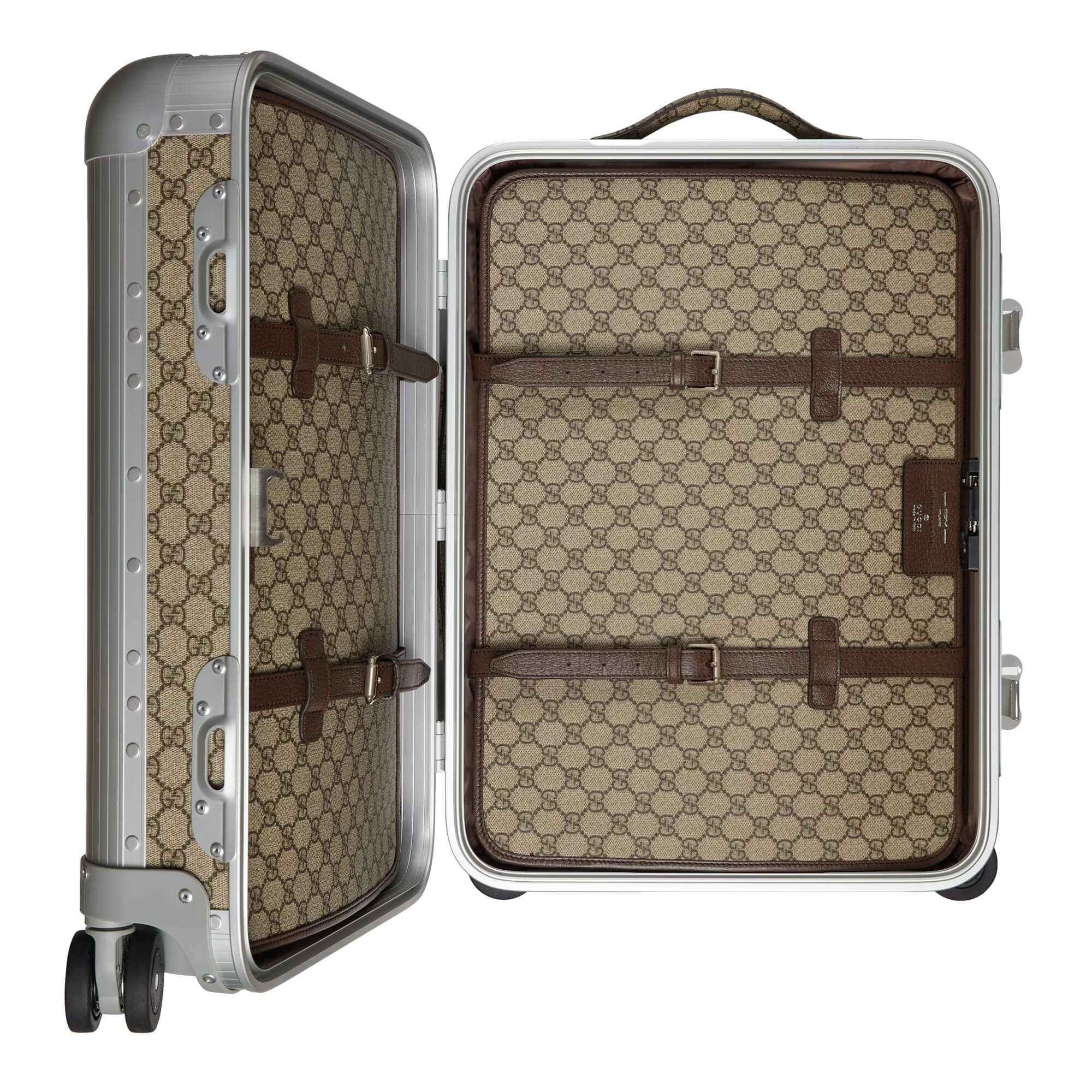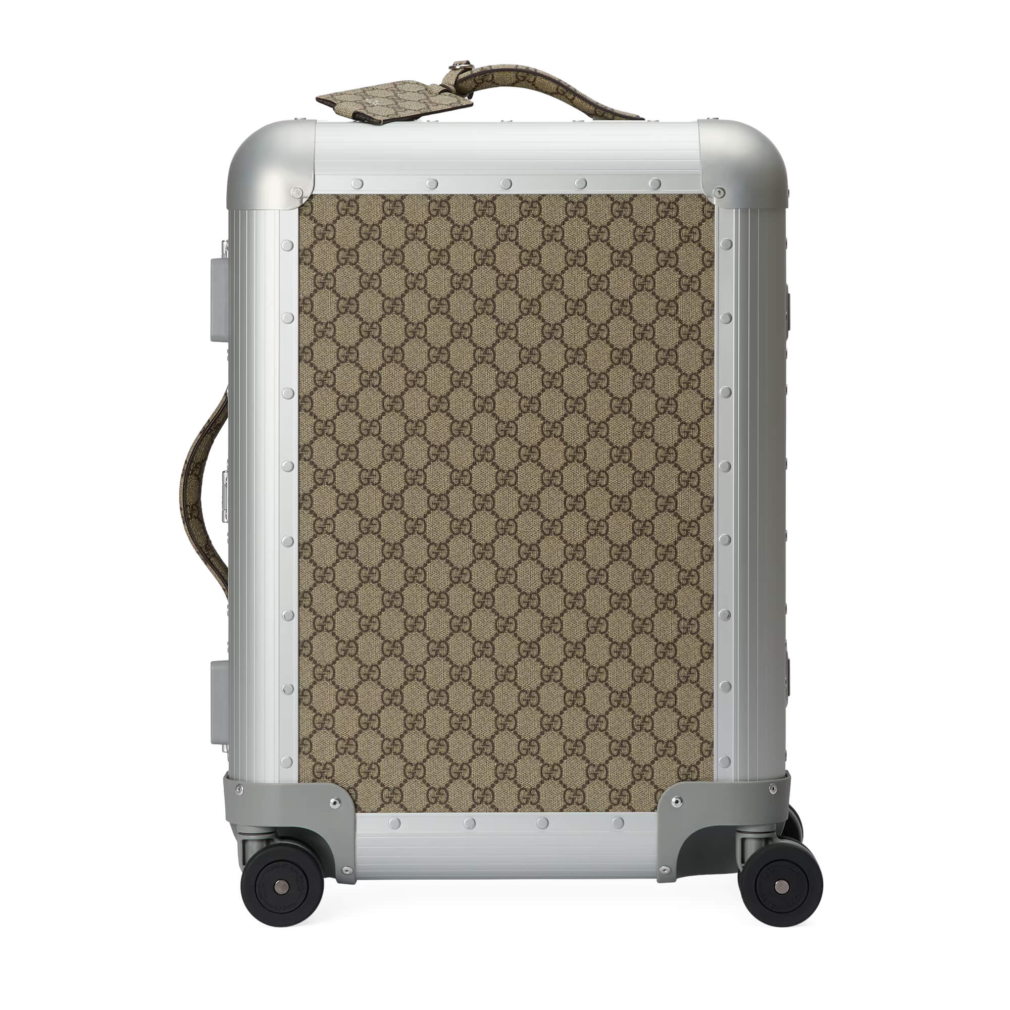מזוות טרולי מאריג GG Supreme בצבע בז׳ וחום בשילוב אלומיניום כסוף