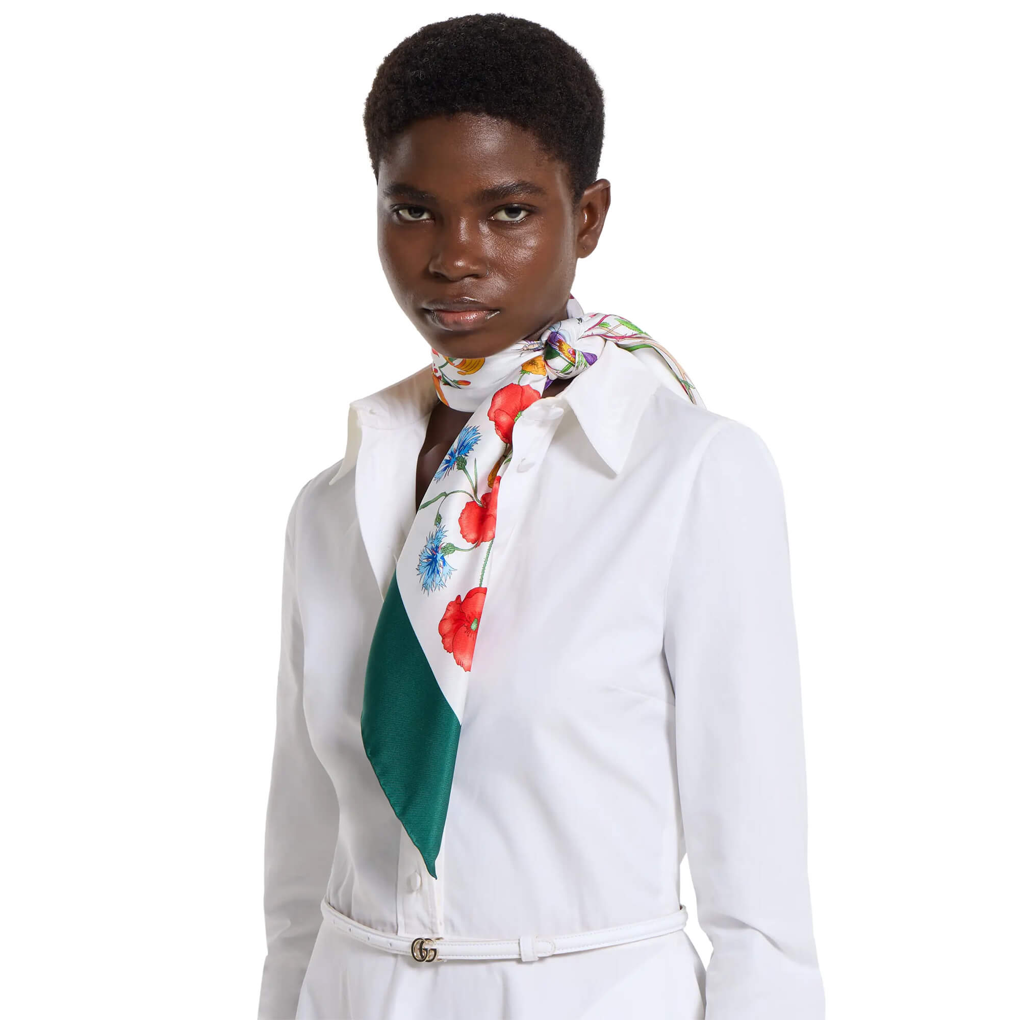 White and multicolor silk twill