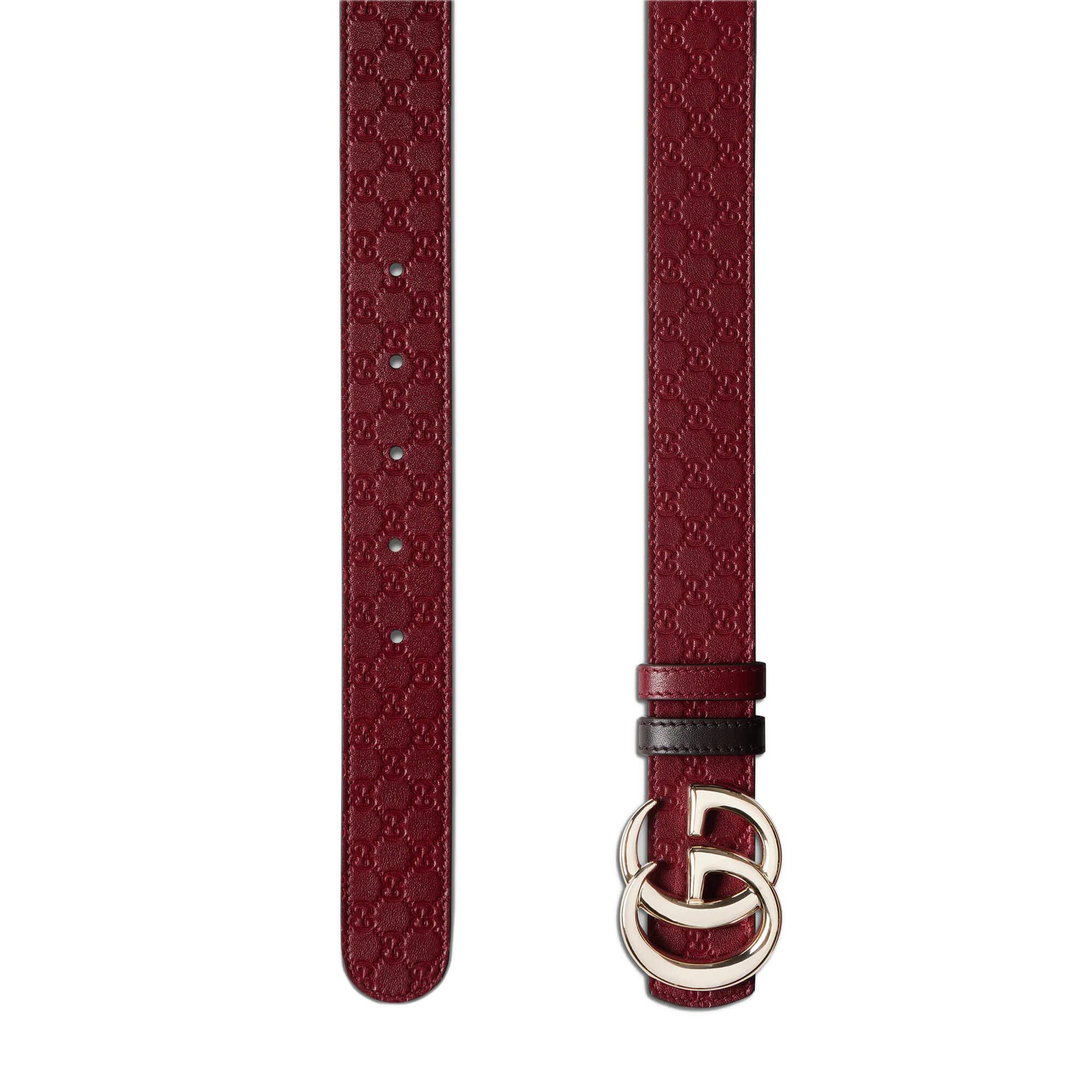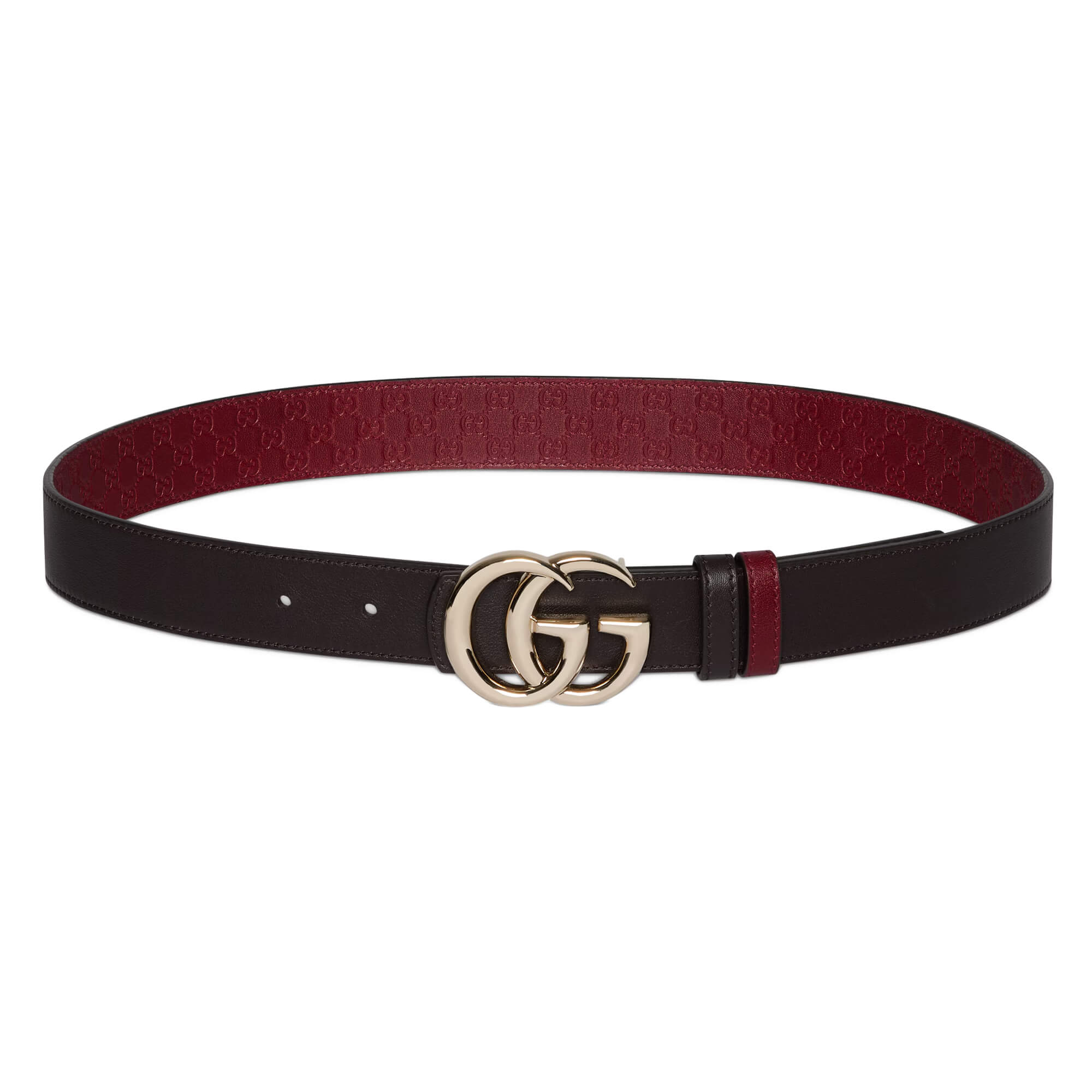 עור Gucci Rosso Ancora אדום עם דוגמת GG מוטבעת בצד אחד ועור שחור בצד השני