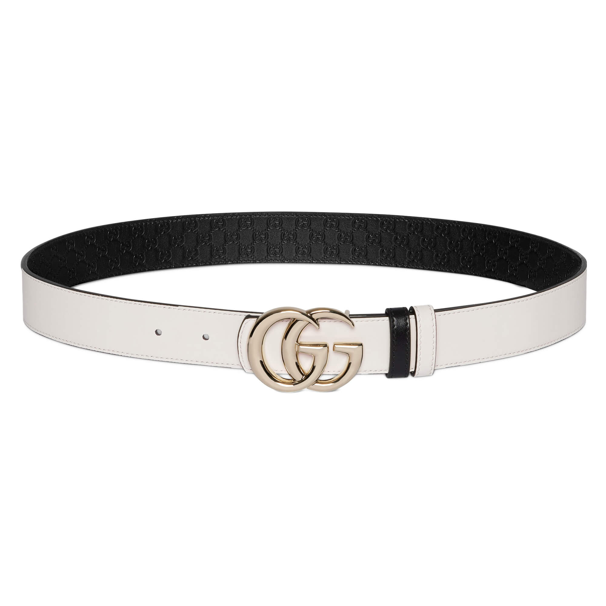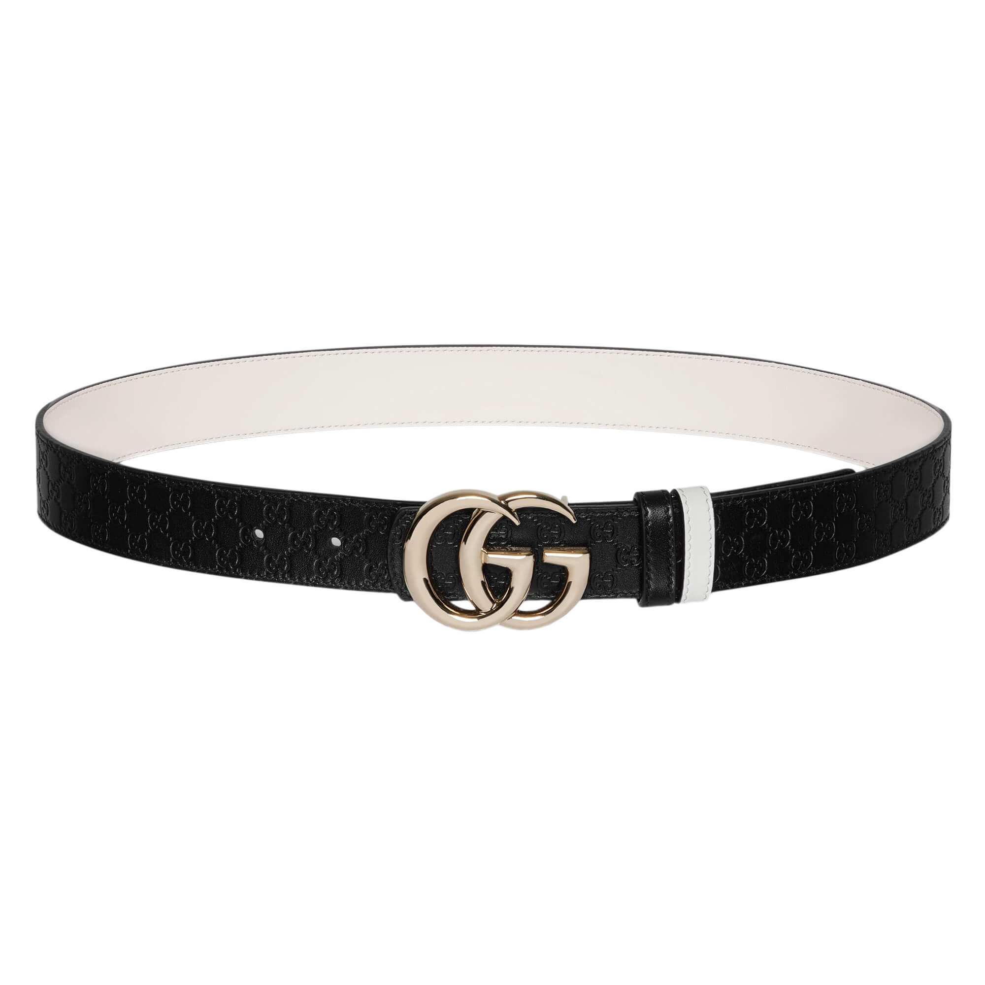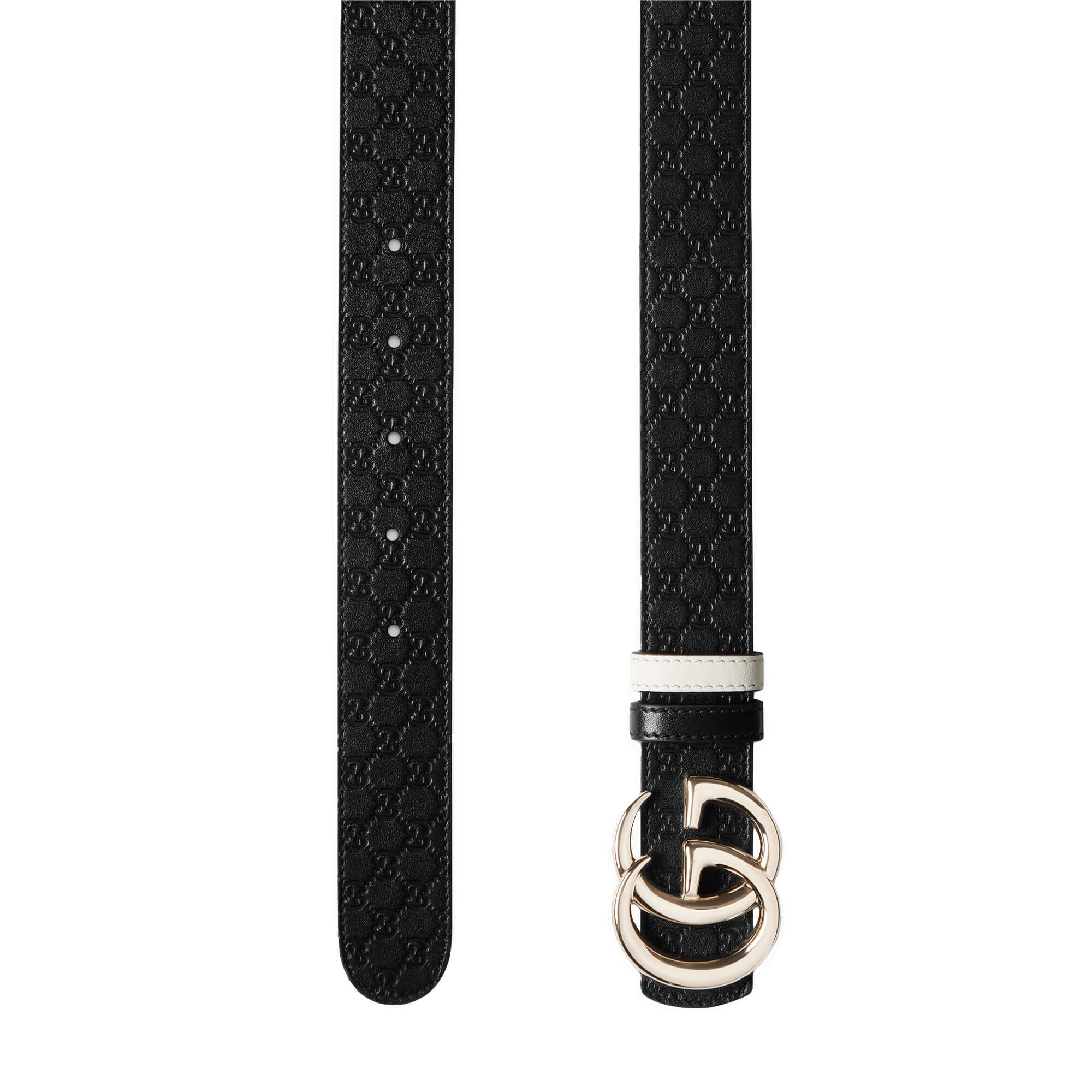 עור שחור עם דוגמת GG מוטבעת בצד אחד ועור לבן בצד השני