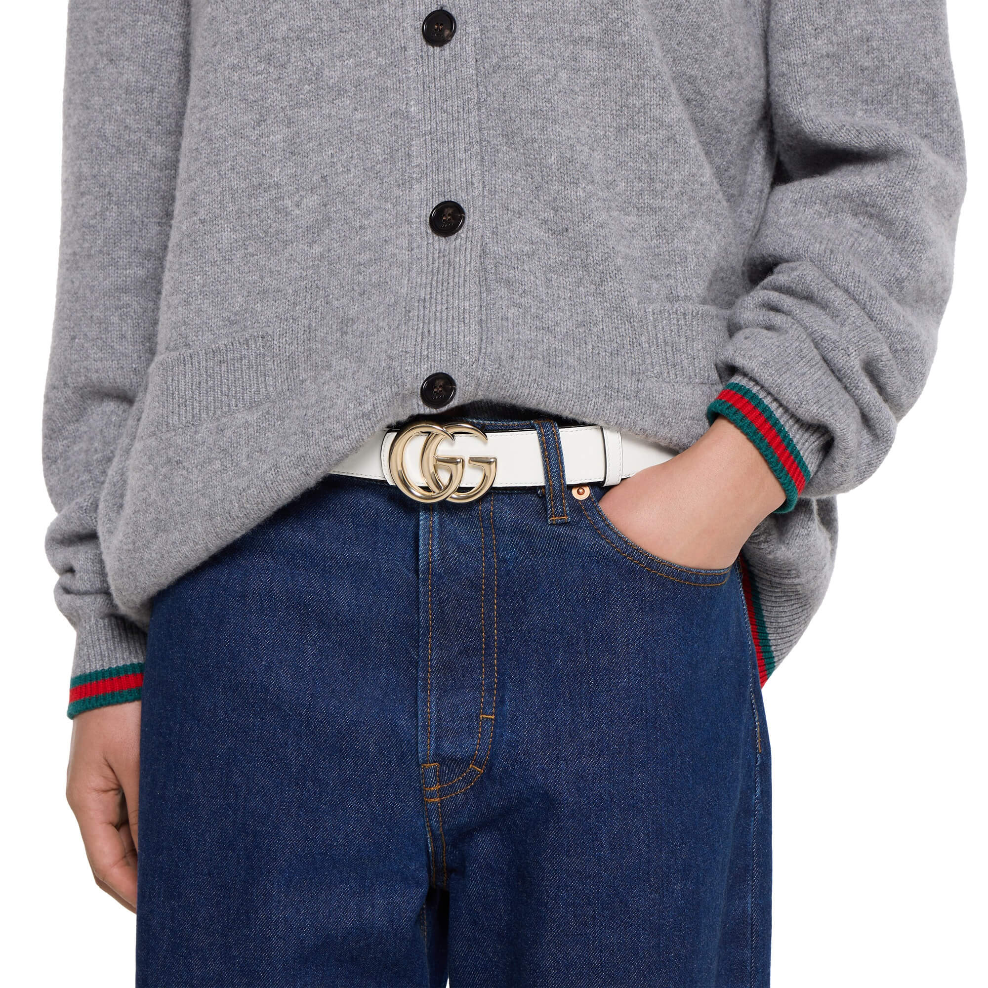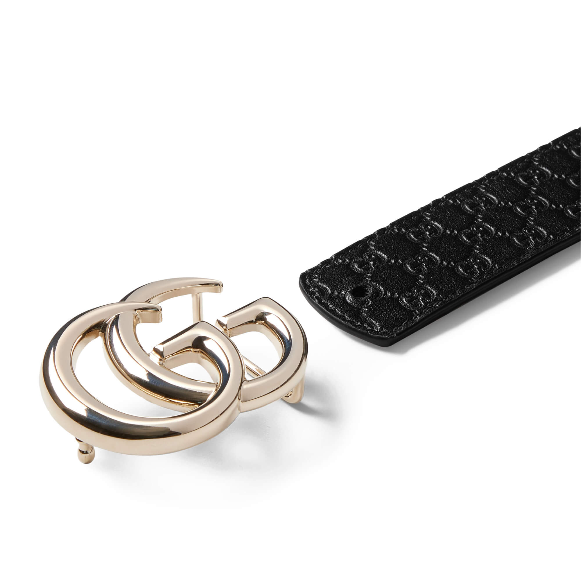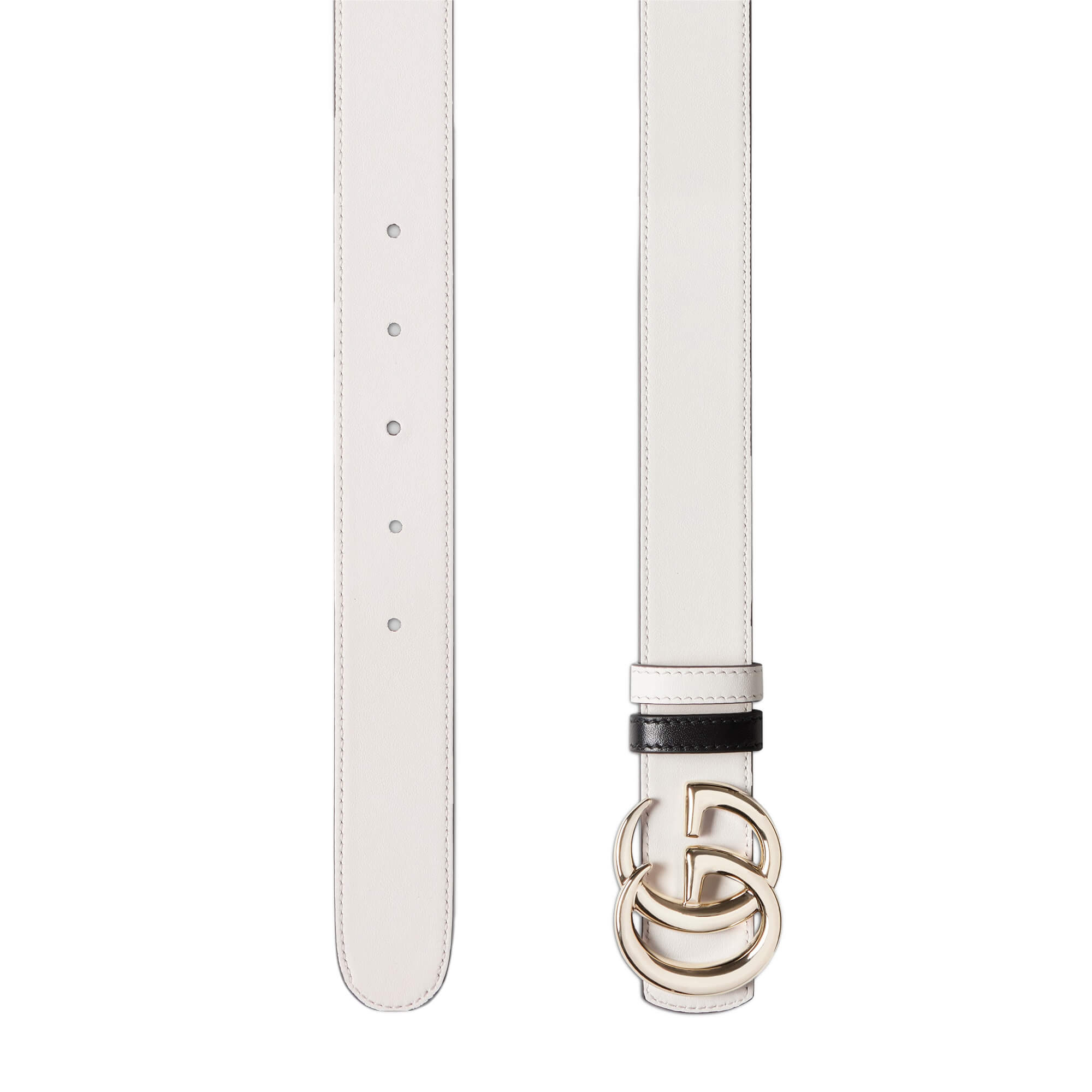 עור שחור עם דוגמת GG מוטבעת בצד אחד ועור לבן בצד השני