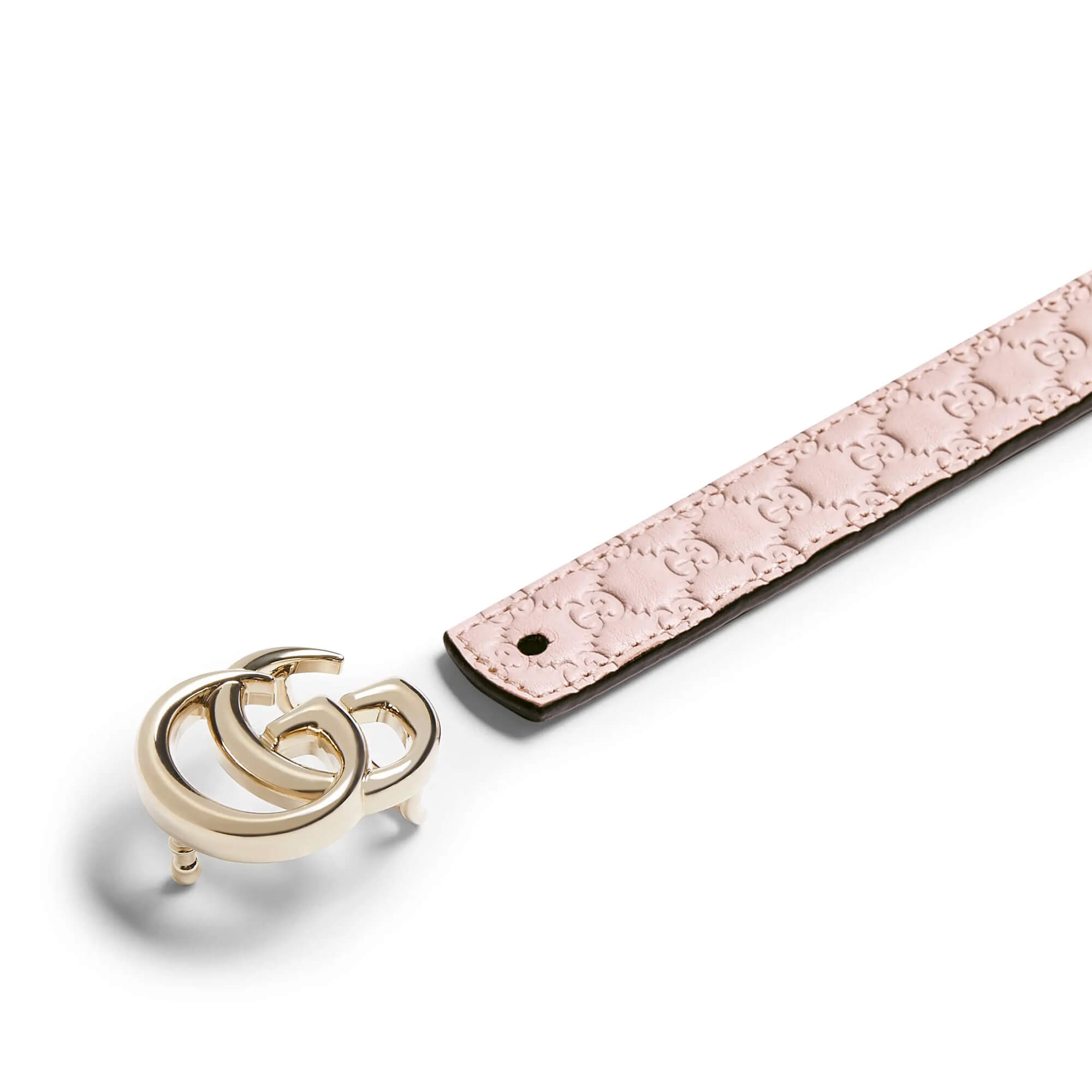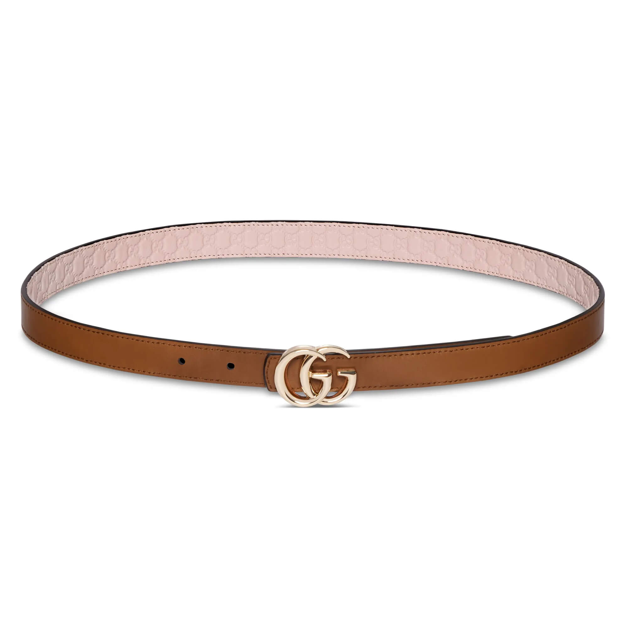 עשויה מעור חלק עם הבלטת GG בצבע ורוד בצד אחד ועור lambskin בצבע חום בצד השני