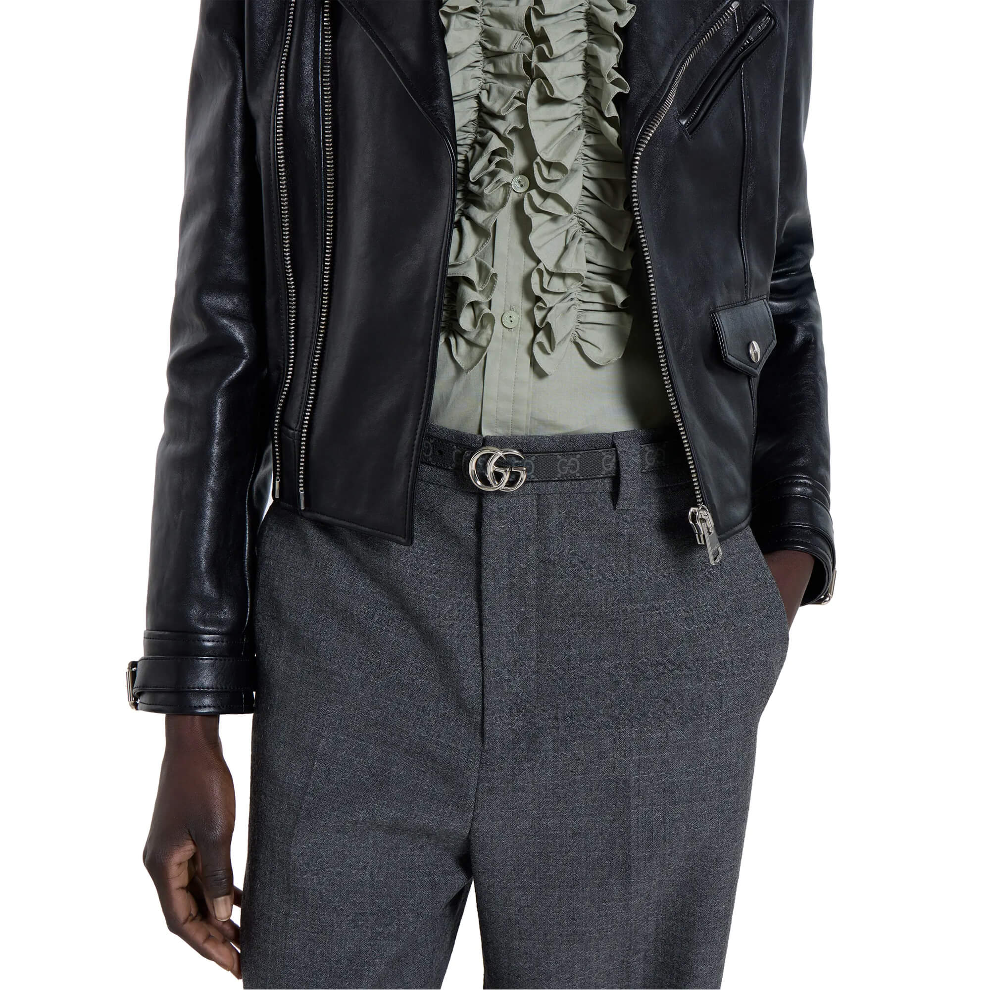 עשויה מאריג GG Supreme בצבע שחור בצד אחד ועור שחור בצד השני