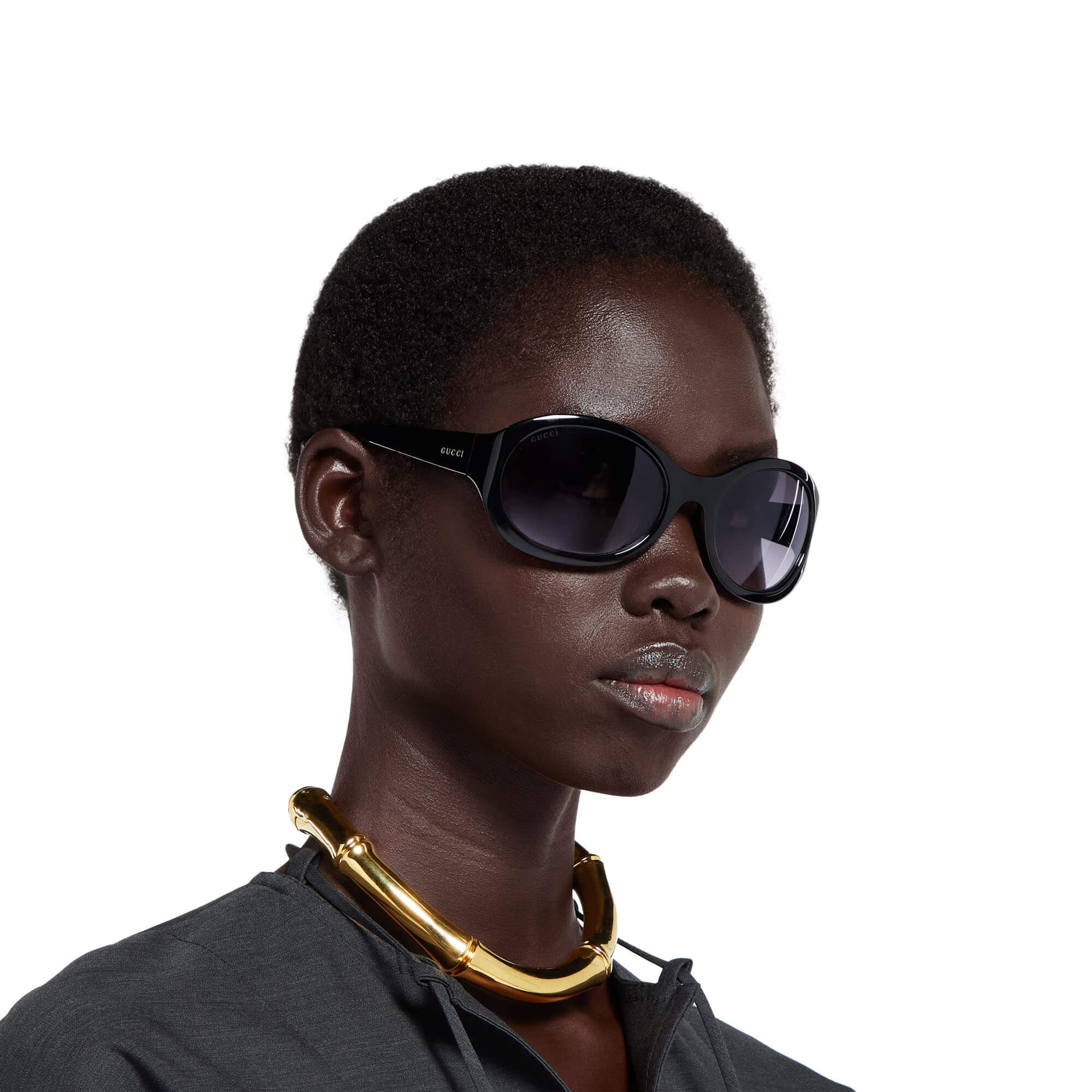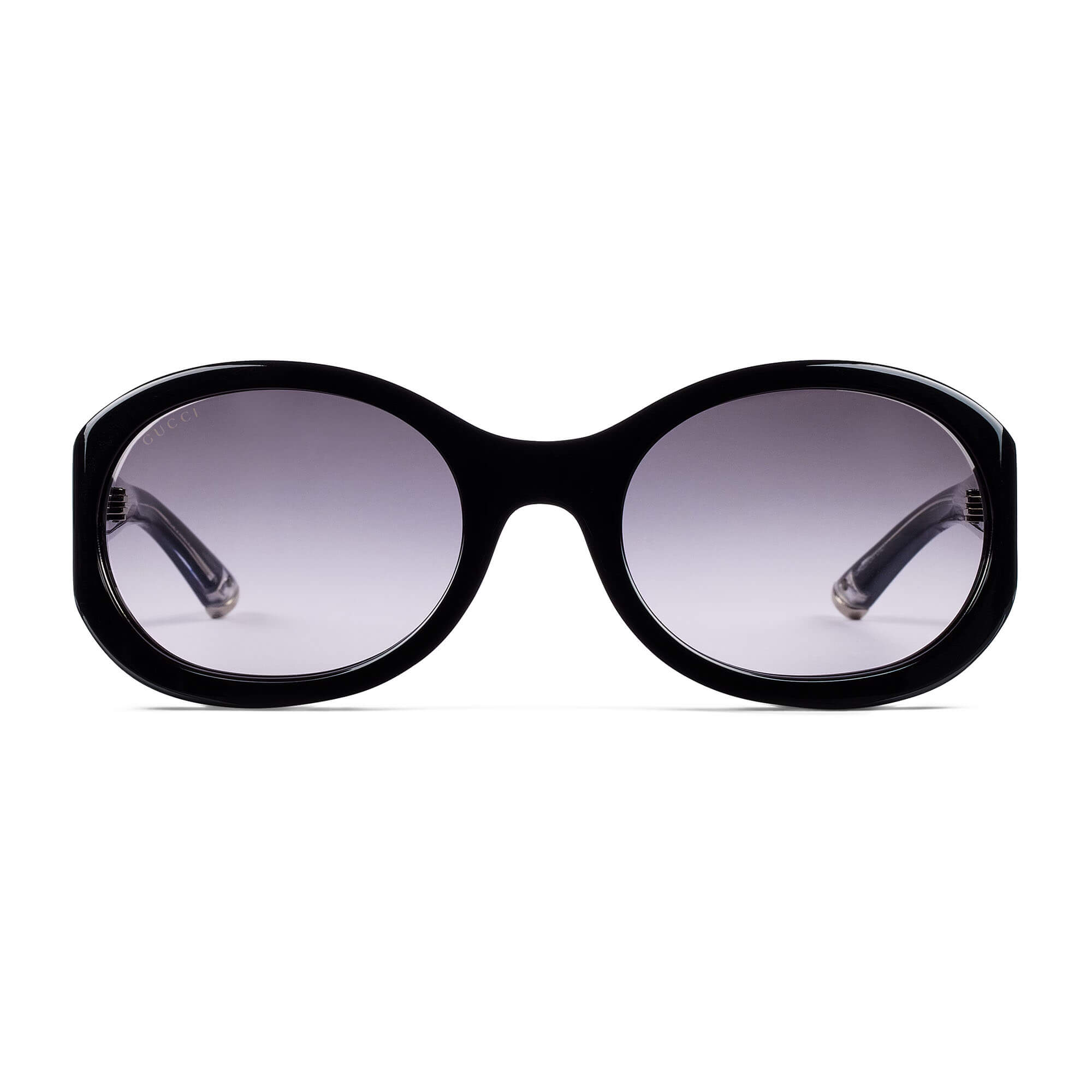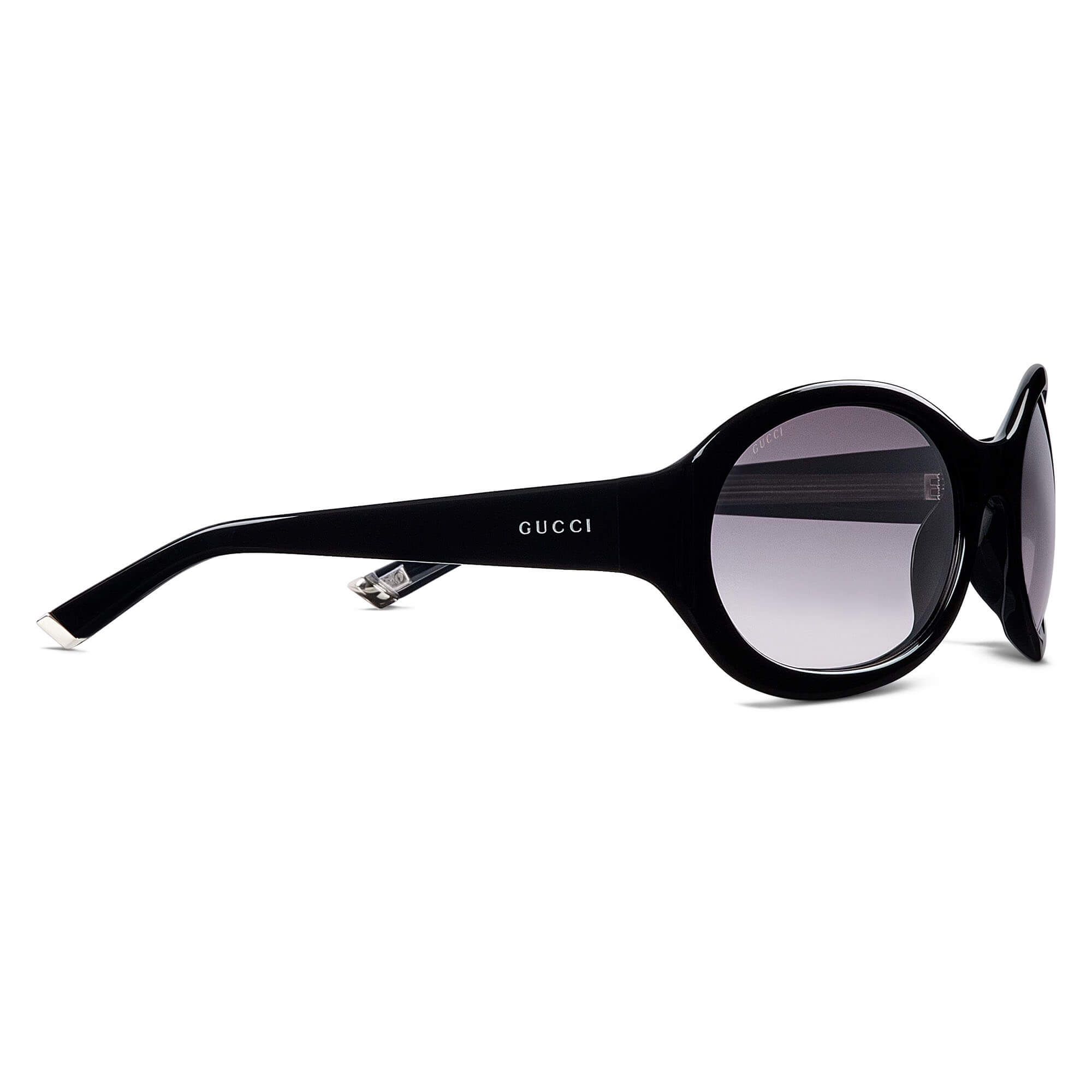Shiny solid black acetate temples with enameled logo and metal tips