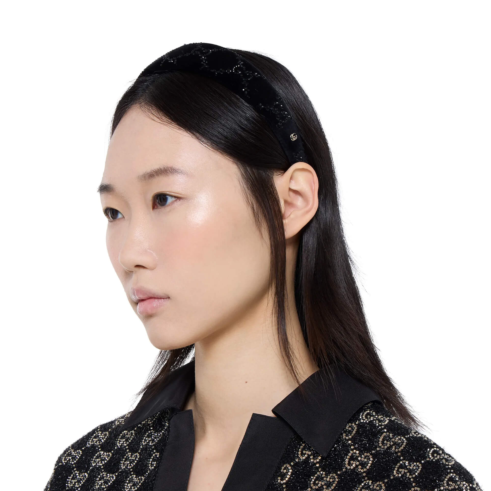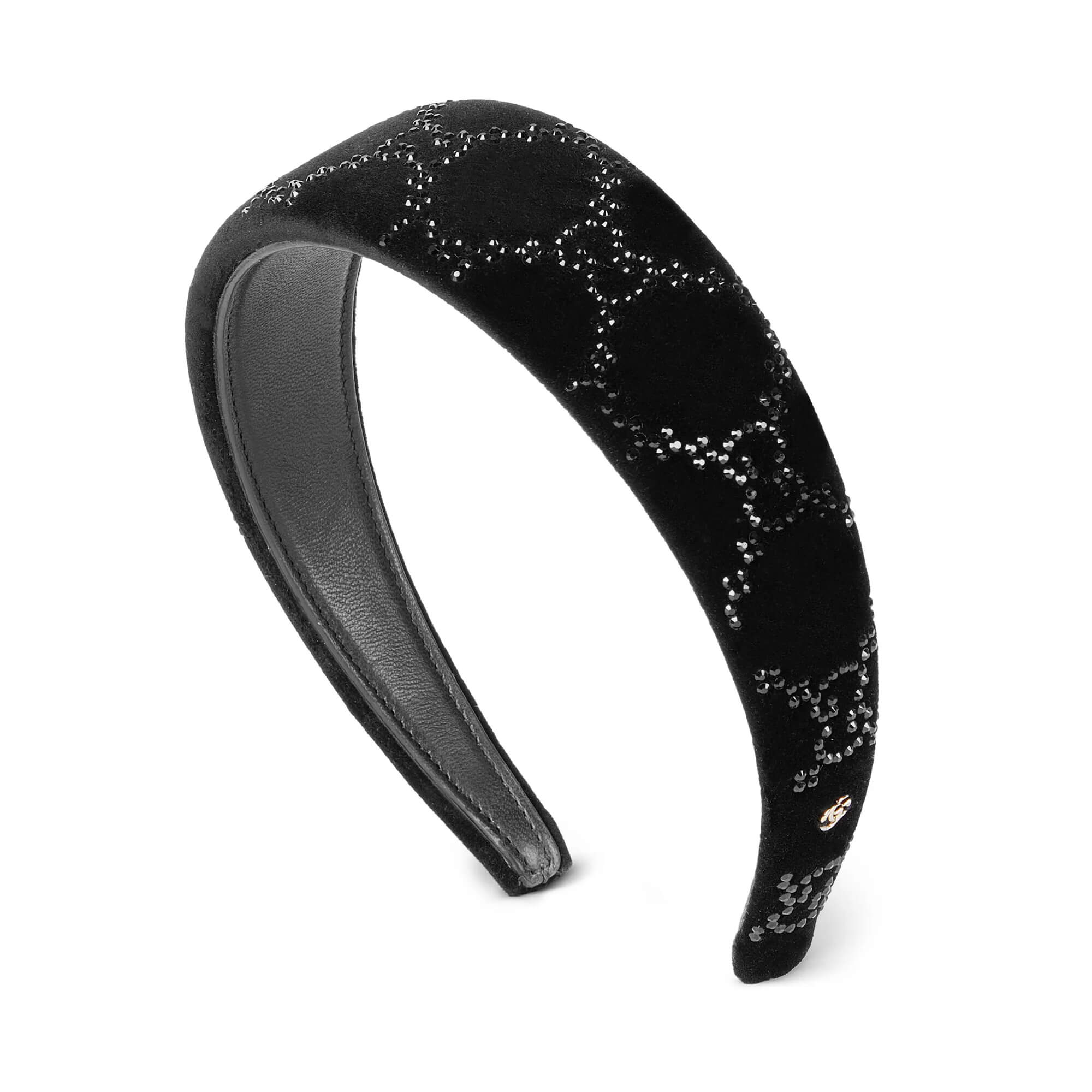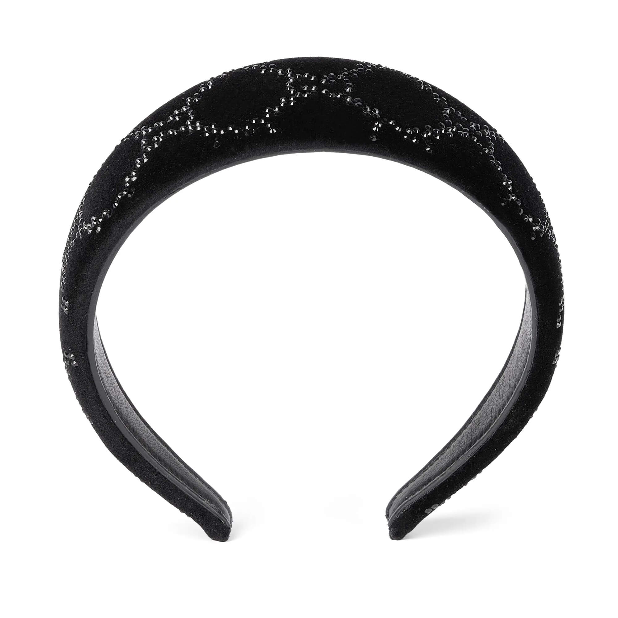 בד קטיפה רך בצבע שחור עם קריסטלי GG