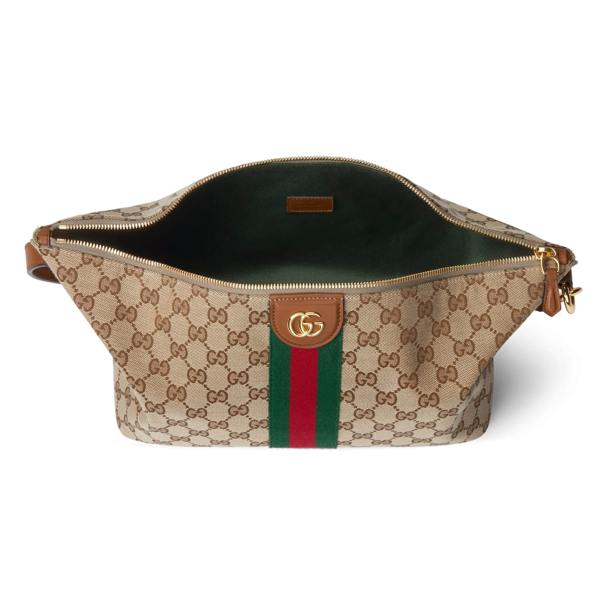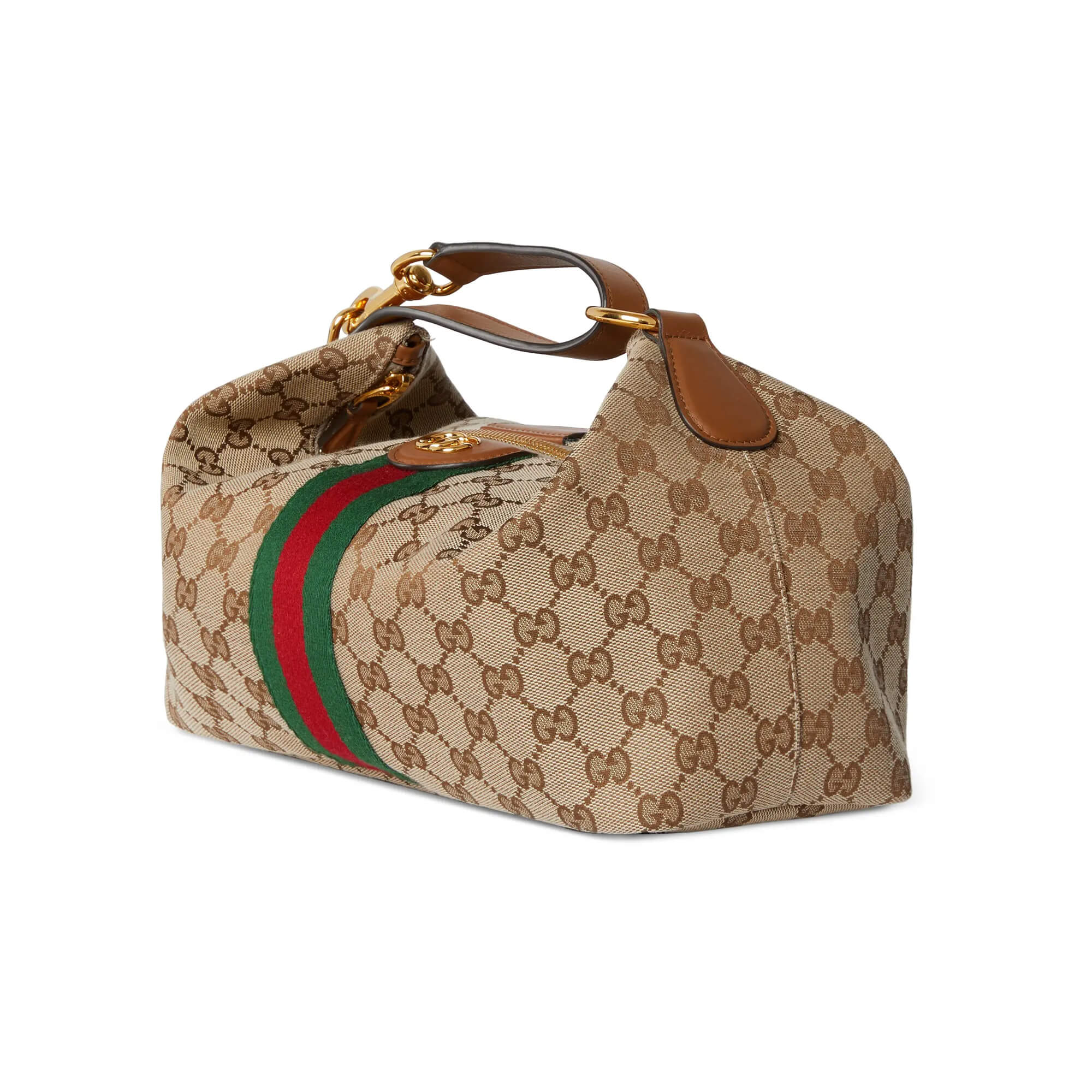 תיק בינוני מאריג GG בצבע בז׳ וחום