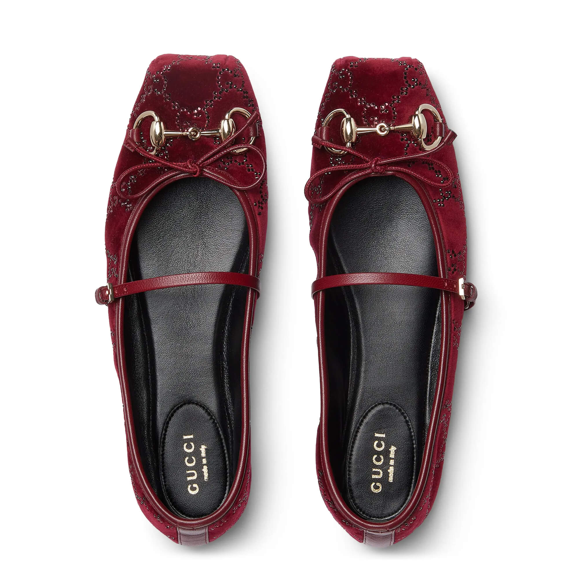 קטיפה משובצת קריסטלים GG בצבע Gucci Rosso Ancora אדום