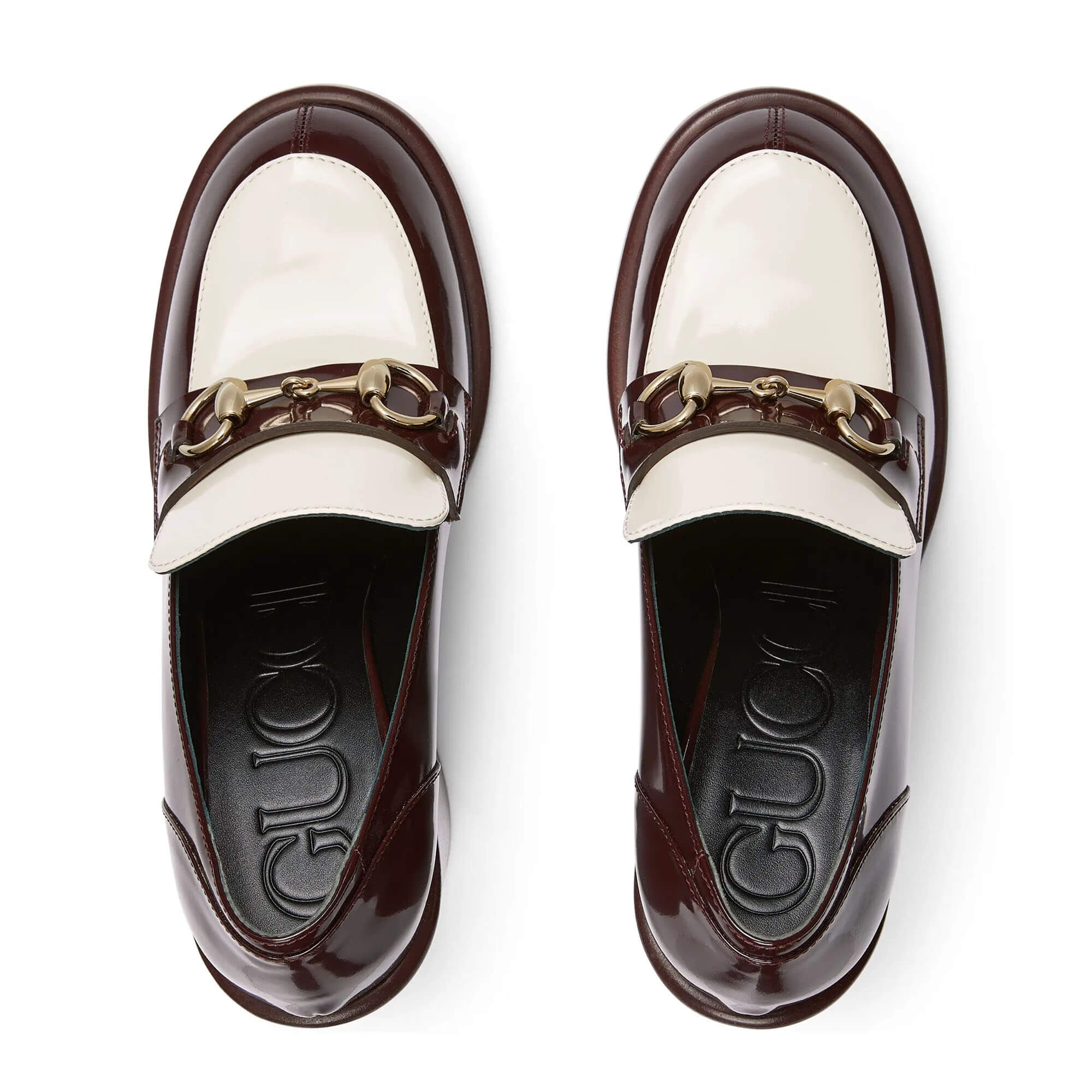 White and bordeaux patent leather