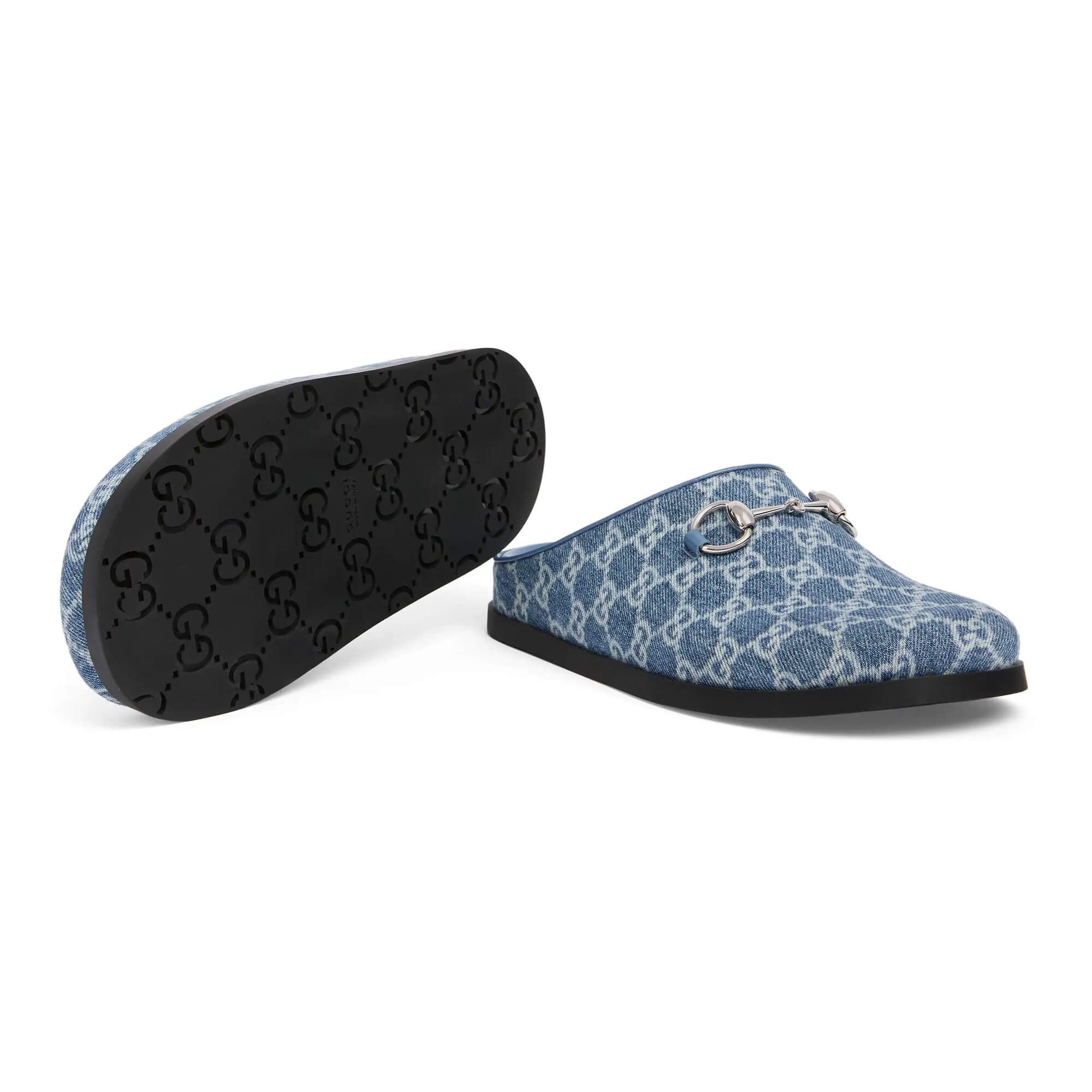 כפכפים מבד ג׳ינס GG בצבע כחול