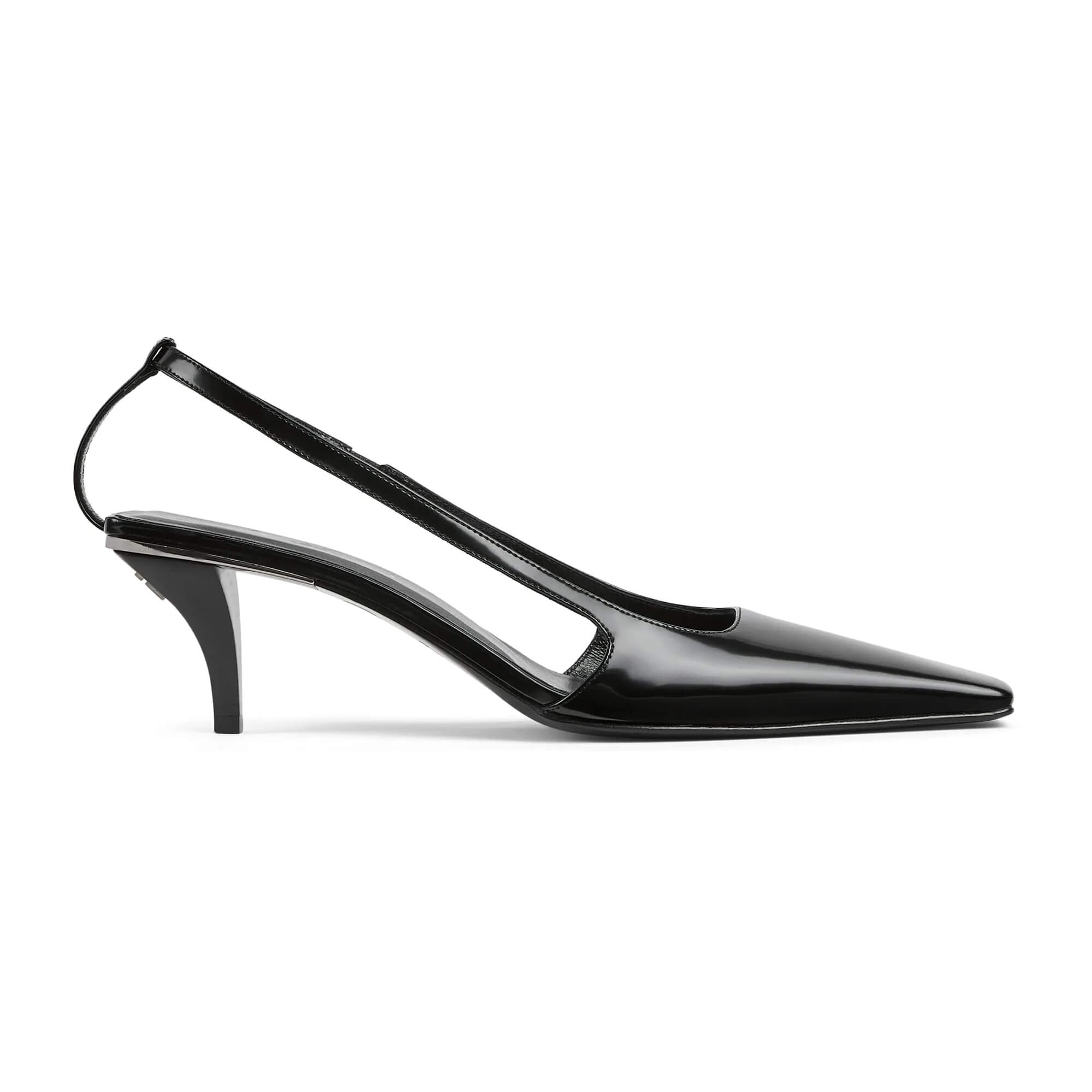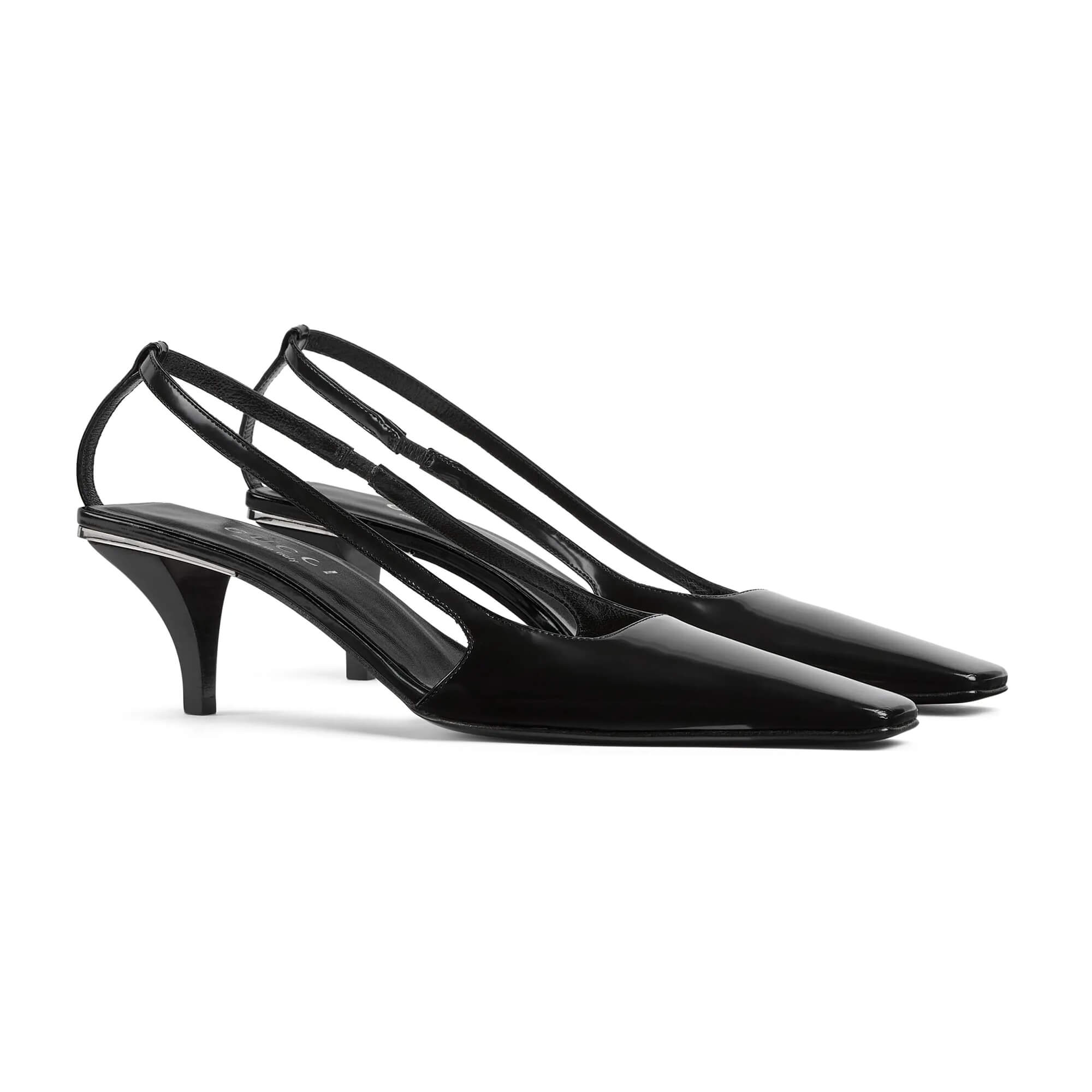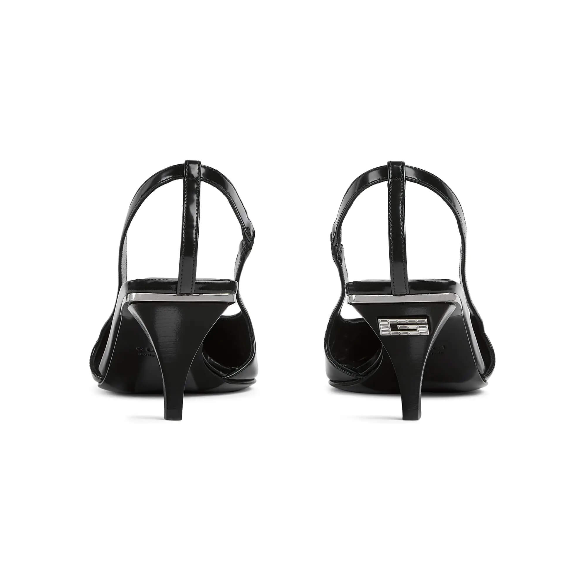 פלטת מתכת עם לוגו משובץ קריסטלים בגב העקב הימני