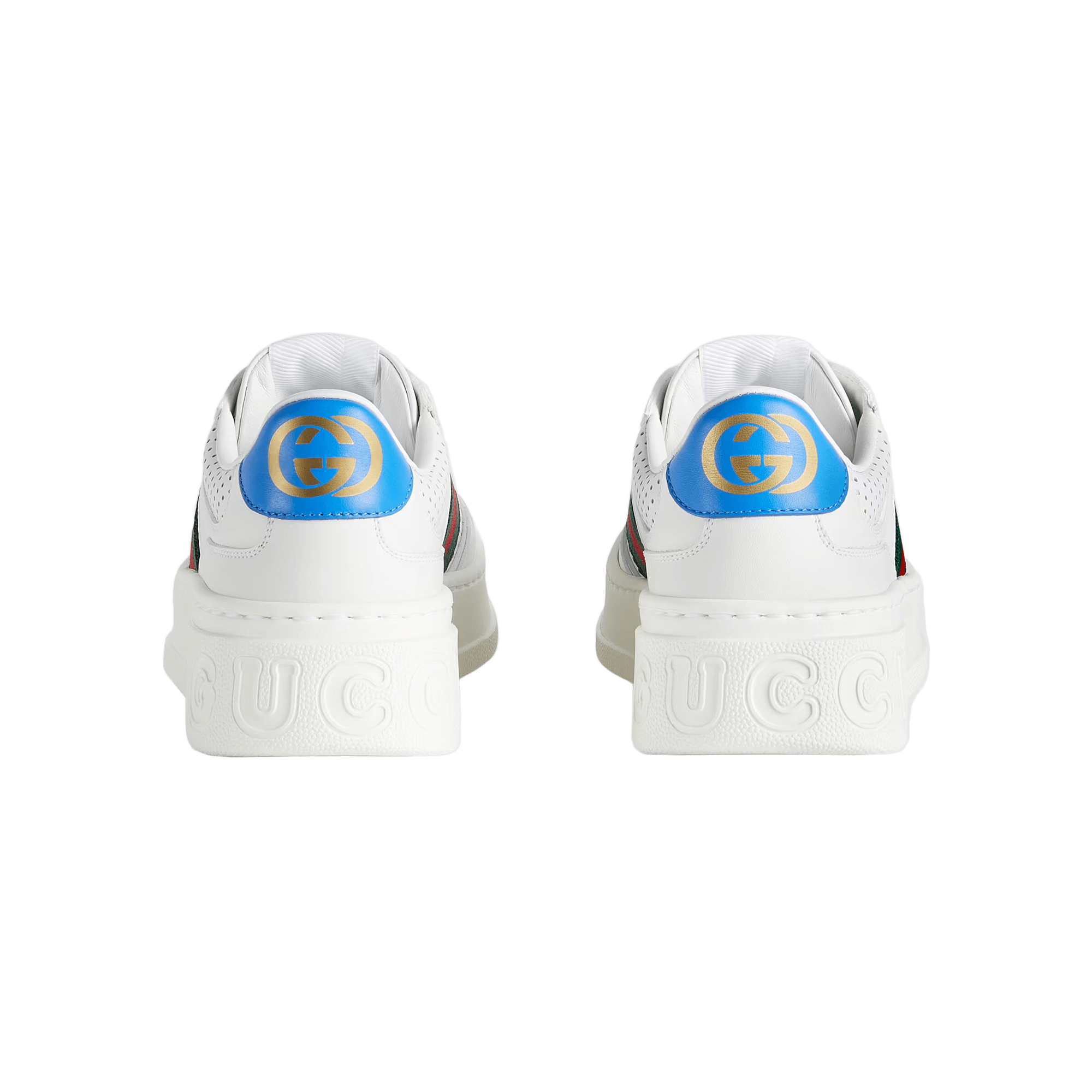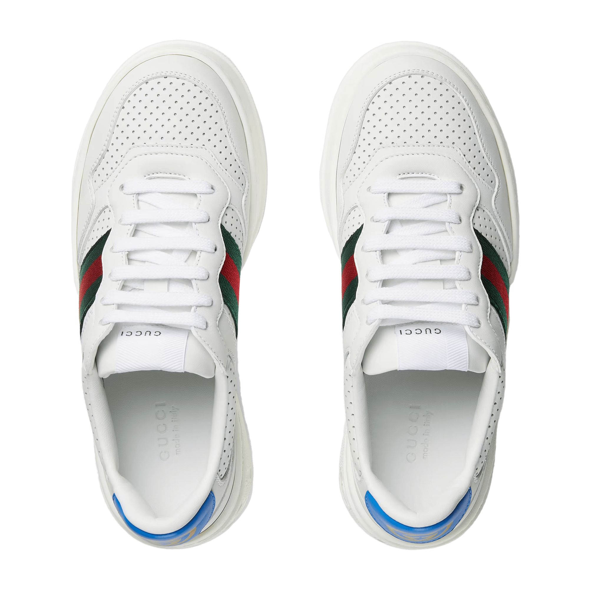 White leather with blue detail at back