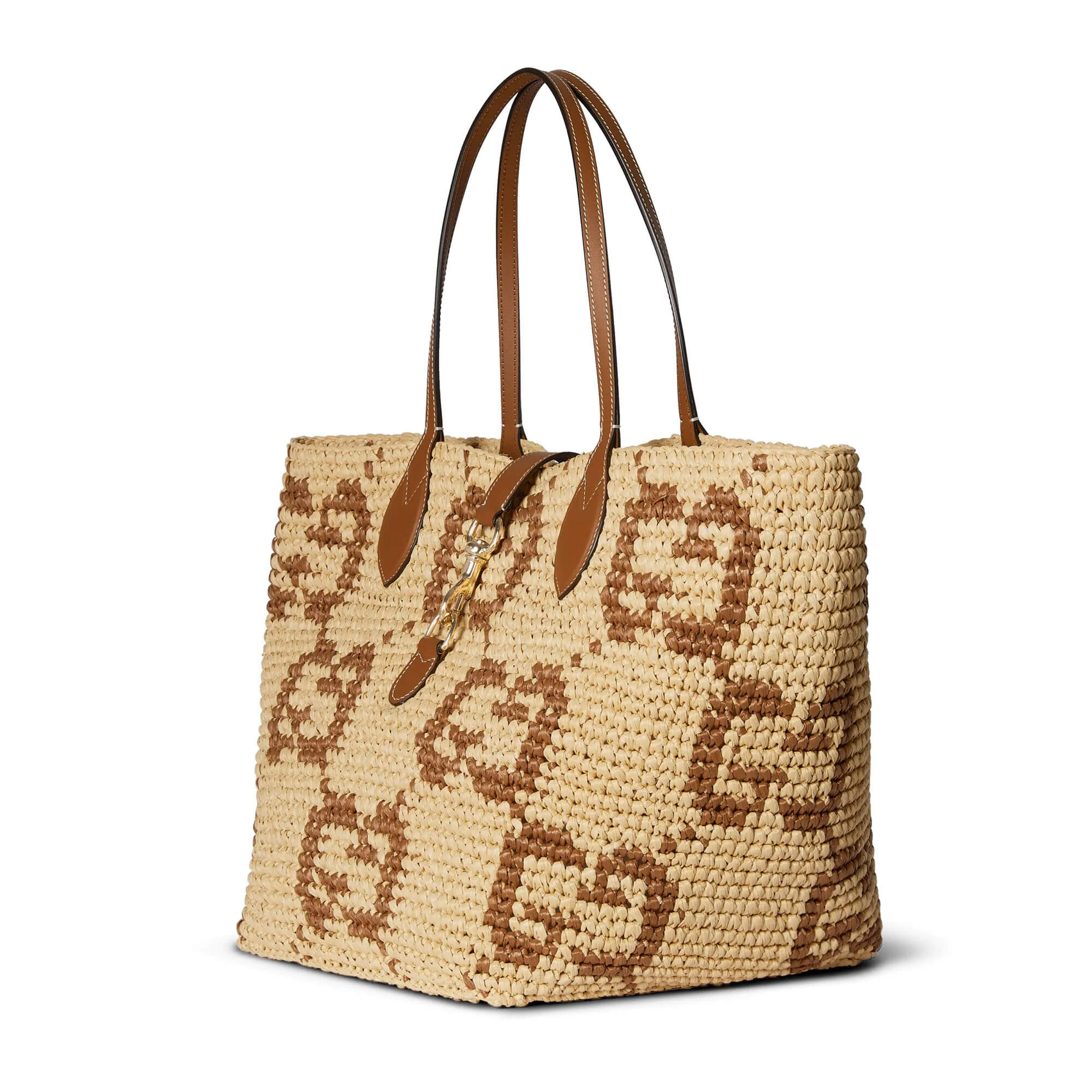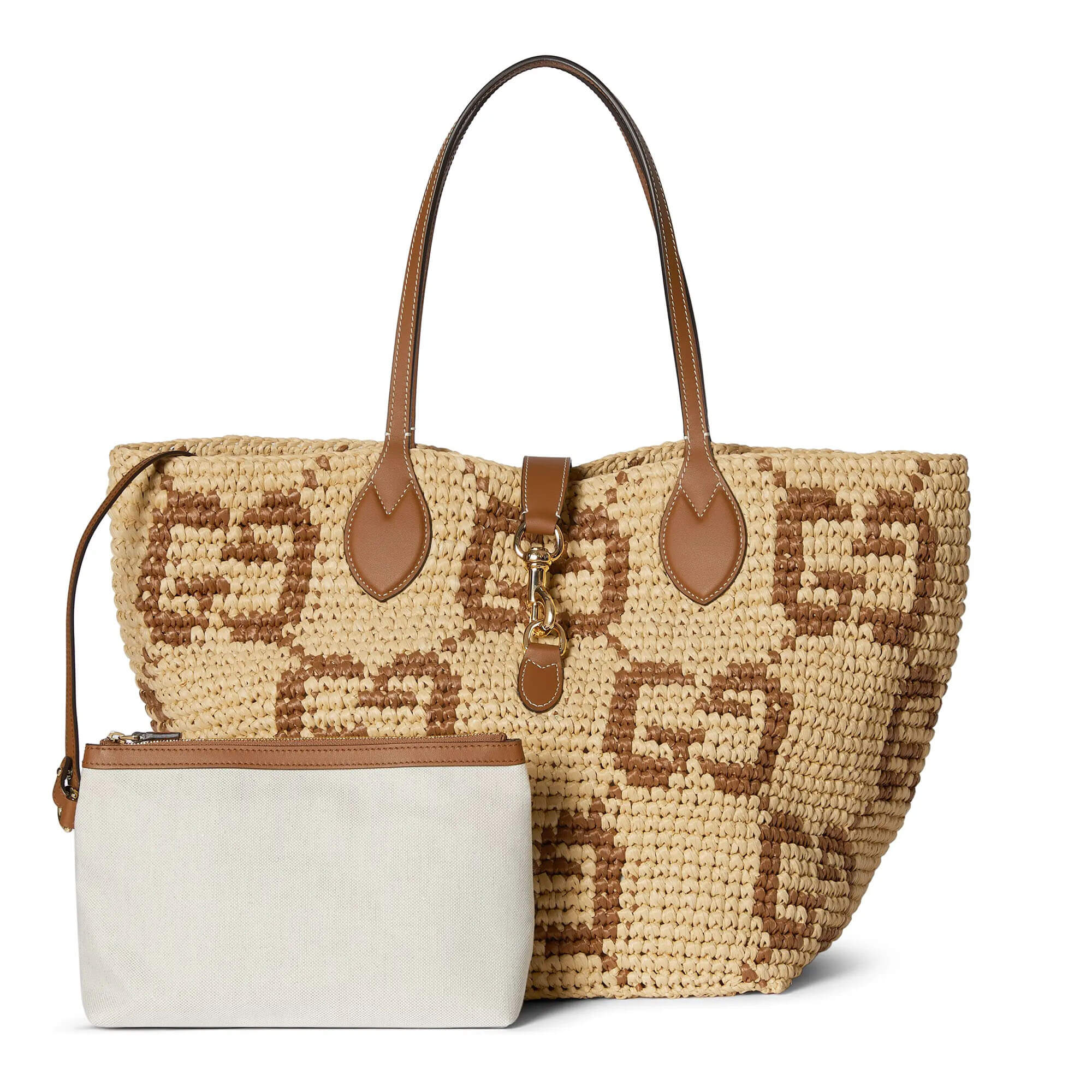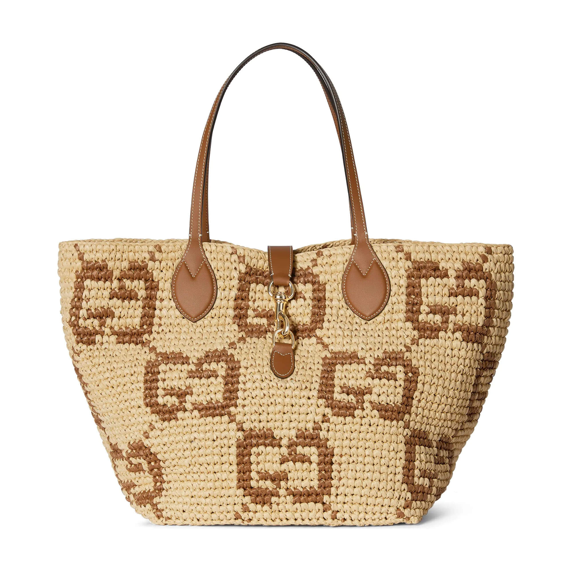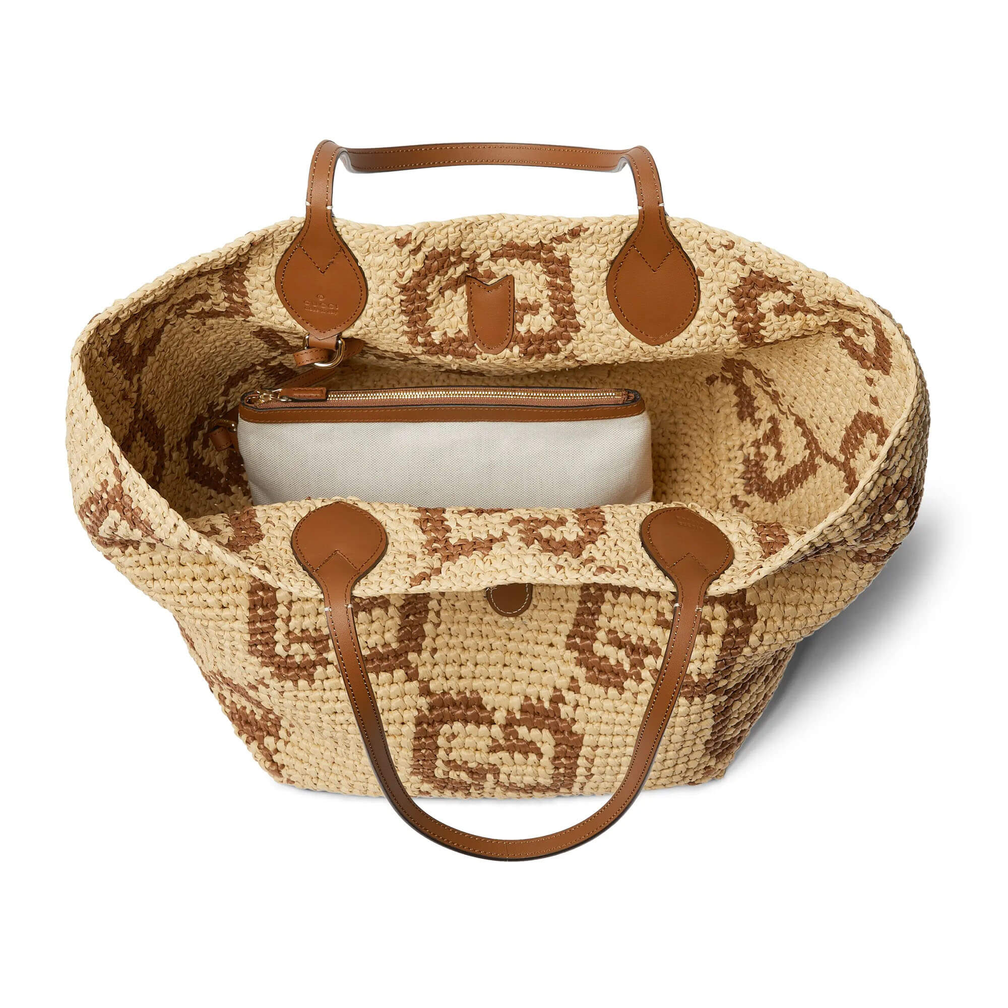 Natural and brown GG raffia-effect fabric