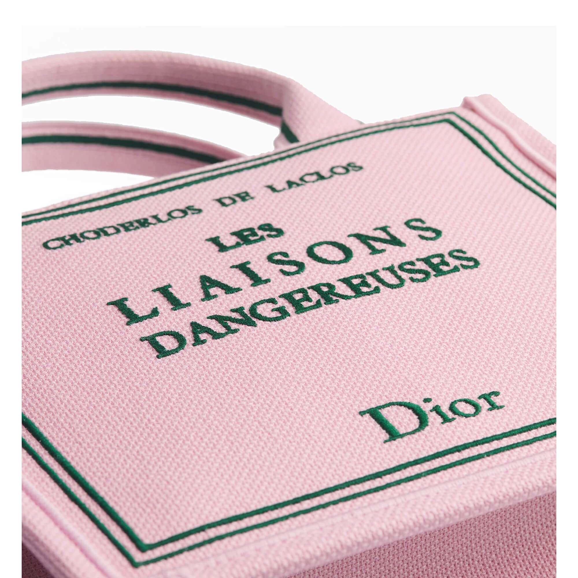 תיק בצבע ורוד עם רקמה ירוקה בהשראת כריכת ספר